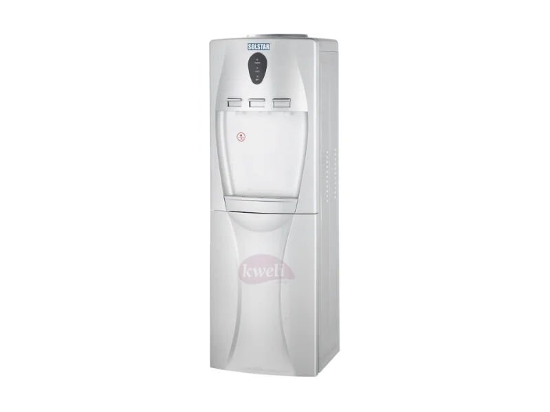 Solstar 3-tap Water Dispenser WD-64C-SLBSS 3 taps 1 cold, 1 hot tap, 1 normal 12-litre cabinet Cooling type; electronic Heating power; 550 watts Compressor Cooling Power: 90 watts Free-standing Can be placed on the tabletop at home or in the office | #KweliGotYou| Order Solstar 3-tap Water Dispenser WD-64C-SLBSS, 12 liter Cabinet, Hot/Cold/Normal, 90 watts online and enjoy free delivery across Uganda > Long warranty > Lifetime After-sales Support