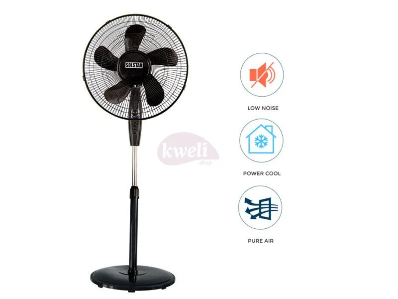 Solstar Stand Fan Blade size: 16 inches Power consumption: 45 watts 5 Blade PP half-transparent Power supply: 220-240V~ 50Hz, 1Ph Height: 130cm Round base 3-speed levels Black | #KweliGotYou| Order Solstar Stand Fan 16 inch FS 1627U-BK SS - Low Noise, Free Standing Fan online and enjoy free delivery across Uganda > Long warranty > Lifetime After-sales Support
