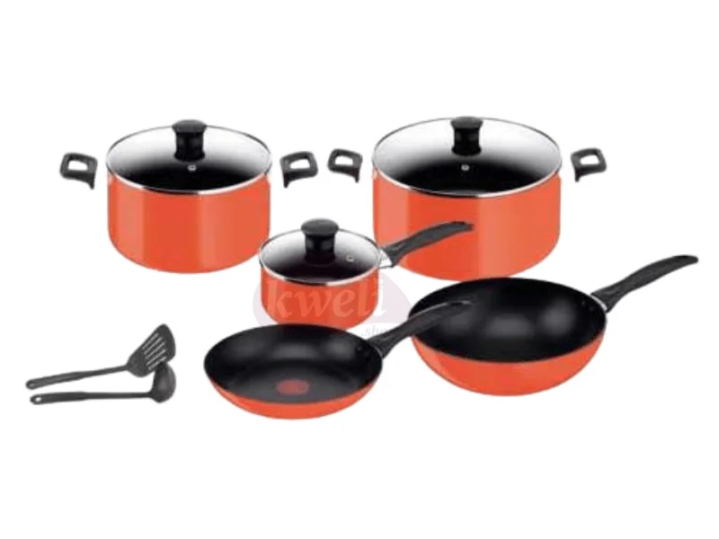 Buy new Tefal 10 Pcs Simply Chef Cookware Set - B092SA85; Non Stick, Aluminium , Orange Black in Uganda - - Free Delivery > Long warranty > Lifetime After-sales Support