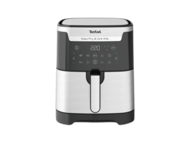 Description Tefal Easy Fry & Grill XXL Air Fryer EY801D27 Tefal Easy Fry & Grill XXL Air Fryer EY801D27 2-in-1 Air Fryer & Grill – versatile cooking in a single appliance. XXL 6.5L / 2kg Capacity – perfect for families, serves up to 8 portions. FlexCook Divider – switch between full volume and dual-zone cooking. 8 Preset Programs – Fries, Nuggets, Chicken, Pizza, Meat, Fish, Vegetables, Dessert. Extra Crisp Technology – crispy results with up to 99% less added fat. Smokeless Grill Plate – nonstick die-cast aluminium with fat-drainage holes. Intelligent Sync Mode – ensures that two dishes finish cooking simultaneously. Easy to Clean – removable nonstick parts are dishwasher-safe. Digital Touchscreen Interface – simple operation with recipe guidance. Durable & Reliable – Stainless steel (Inox) finish, backed by 1-year warranty.
