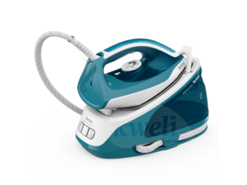 Tefal Easy Steam Steam Generator Iron SV6131G0 Sanitary steam to sanitise your clothes Express ironing Space-saving Easy refills 120 g/min Steam output 350 g/min Steam boost 5 temperature settings with easy-to-use controls 5.8 bar Water pump 2 min heat-up time Easy vertical steaming 2,200 watts for fast heat up 1-year FREE warranty | #KweliGotYou| Order Tefal Easy Steam Steam Generator Iron SV6131G0, 2200 watts, Ceramic Xpress Glide online and enjoy free delivery across Uganda > Long warranty > Lifetime After-sales Support