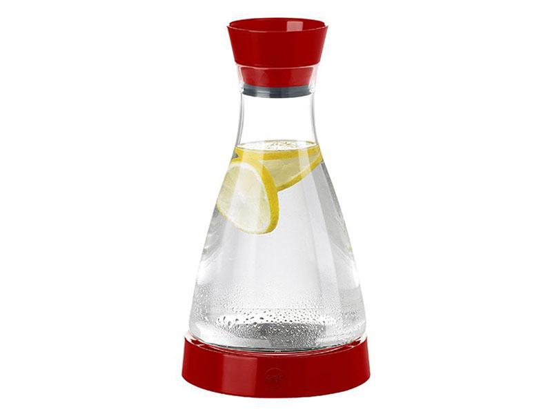 Description Stylish, cool and colourful plastic jug A colourful jug for the home that keeps your drinks cooler for longer. Optimum refrigeration thanks to an integrated cold accumulator. Keeps cool for at least 4 hours. Automatic valve – opens and closes automatically when you pour the drink and thus ensures protection against insects, leaves, etc. Hygienic and practical spout for drip-free service. Dishwasher safe.