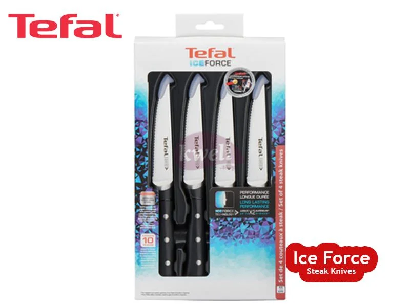 Experience up to 2x longer lasting performance with Ice Force knives * Thanks to Ice Force technology, Ice Force knives provide the optimal cutting experience. The blades are cooled by a cryogenic process at -120 ° C for a perfect finish, added strength and better resistance to corrosion. A must-have knife collection for all your cutting needs from slicing to dicing to chopping | #KweliGotYou| Order TEFAL Ice Force Set of 4 Stainless Steel Steak Knives - K232S414 online and enjoy free delivery across Uganda > Long warranty > Lifetime After-sales Support
