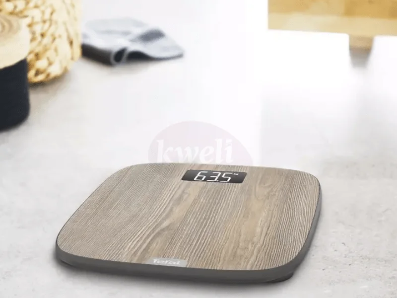 Description TEFAL Personal scale Origin Light Wood PP1600V0 For a natural and cozy touch in your bathroom The Tefal Origin digital scale gives your bathroom a cozy and natural touch, with an easy-to-read XXL backlit display with large numbers and the platform is finished in light wood. High capacity up to 160 kg/350 lbs and a 100 g/0.2 lb graduation (choose imperial or metric units yourself). This harmonious and modern bathroom scale offers the perfect combination of reliability and style. Backlit XXL screen The backlit XXL screen offers crystal clear large numbers (36mm in size) so your weight can be read quickly and effortlessly. Calming natural style Bring natural coziness and harmony to your bathroom with this stylish platform, finished with a light wood effect and the perfect dimensions of 31 x 31 cm. Large weighing capacity Up to 160 kg (350 lbs) capacity with a 100 g (0.2 lb) graduation for an easy-to-use scale you can count on day after day. Automatic switch-on Everyday comfort with the easiest scale: just step on the scale and your weight will appear automatically. Easy weighing Offers versatility and comfort with the option of both metric (g, kg) and imperial (lb) units. Convenient slim design Only the essentials: The sleek, compact design offers total comfort and a modern style that fits perfectly in any size of bathroom. Batteries included Your new bathroom scale is ready for use immediately after unpacking thanks to the 4 included AAA batteries