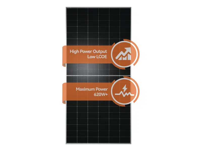TW Solar 620‑Watt N‑type Monocrystalline Half‑cell Bifacial Solar Panel Electrical Characteristics (STC): Maximum Power (Pₘₐₓ): 620 Wp Open‑Circuit Voltage (Vₒc): 48.30 V Voltage at Maximum Power (Vmp): 41.55 V Current at Maximum Power (Imp): 14.93 A Short‑Circuit Current (Isc): 15.95 A Module Efficiency: 23.0 % Mechanical Parameters: Cell type: TNC (N‑type monocrystalline) in a 132‑cell (6×22 half‑cell) layout Dimensions: 2382 × 1134 × 30 mm (±2 mm) Weight: 32.5 kg Front glass: 2.0 mm AR‑coated, heat‑strengthened Rear glass: 2.0 mm heat‑strengthened Frame: Anodised aluminium alloy Junction box: IP68 rated with 3 diodes Output cable: 4.0 mm² (standard length +400 mm/–200 mm; custom ±1400 mm available) Wind load: 2400 Pa; Snow load: 5400 Pa Packaging: 36 panels per pallet; 720 panels per 40′ HC container Key Features: N‑type cells for negligible LID and superior low‑light performance Half‑cell design to reduce resistive losses and improve shade tolerance Bifacial capability for up to +30 % additional rear‑side energy Robust build with tempered glass and IP68 junction box for harsh environments Excellent temperature coefficient (–0.30 %/°C) for higher yield in hot climates | #KweliGotYou| Order TW Solar 620‑Watt N‑type Monocrystalline Half‑cell Bifacial Solar Panel 66HD620; Voc 48.30 V, Vmp 41.55 V, Imp 14.93 A, Isc 15.95 A, 23.0 % Efficiency online and enjoy free delivery across Uganda > Long warranty > Lifetime After-sales Support