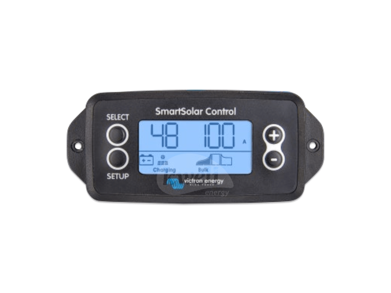 Victron SmartSolar Charge Controller MPPT 150/70Tr VE.Can Rated charge current: 70A Maximum PV Open Circuit Voltage: 150V Ultra-fast MPPT: Enhances energy harvest by up to 30% compared to PWM controllers and up to 10% compared to slower MPPT controllers, especially in varying light conditions. Advanced MPPT Detection: Optimises energy harvest under partial shading conditions by ensuring the controller locks onto the optimal MPP, avoiding suboptimal points. High Efficiency: No cooling fan is required; efficiency exceeds 98%. Flexible Charge Algorithm: Fully programmable with eight pre-set algorithms, offering customisation for different battery types. Robust Protection: Includes over-temperature, PV short circuit, reverse polarity, and current protection. Bluetooth Smart Built-in: Enables wireless setup, monitoring, updates, and synchronisation with other Victron devices. Wired Connectivity: Options for VE.Direct or VE.Can connect to other systems or monitoring devices. Battery Recovery Function: Capable of charging batteries discharged to zero volts and reconnecting to fully discharged Li-ion batteries with integrated disconnect functions. Programmable Relay: Allows for custom alarms or event-triggered actions. Optional LCD Display: Easily attachable to the front of the controller for on-site monitoring