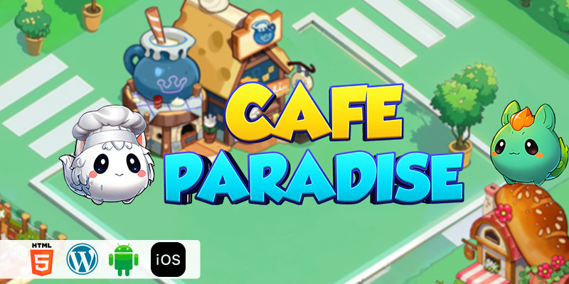 Cafe Paradise - HTML5 Construct3 Game. Buy tasty cakes, merge them to unlock new recipes and serve them to cute falling customers!