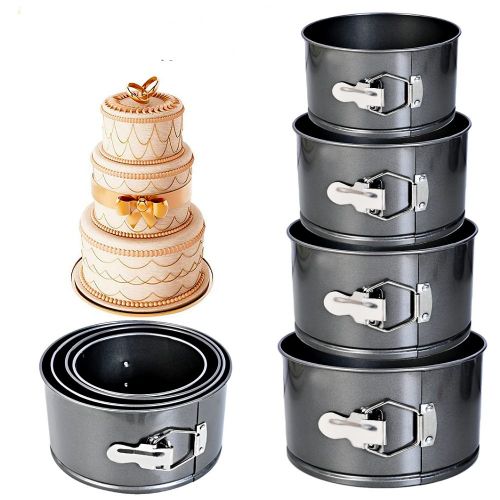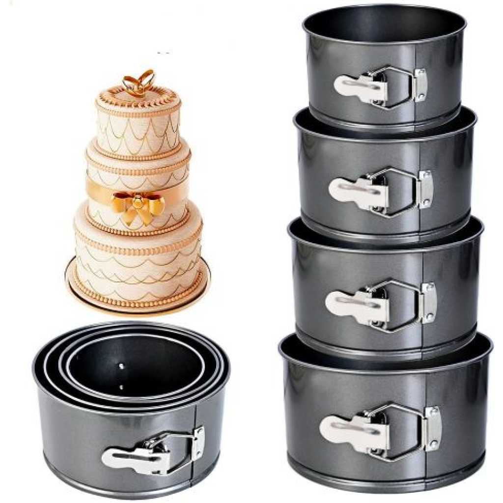 Key Features: Cake Decor 4 Pcs Round Springform Tin Nonstick Cake Mould Bakeware Pan Round- Black Nonstick surfaces Use this pan with or without baking cups Stick resistant Teflon coating for quick release Quick, easy, and convenient to clean Size: 4 x 3.5 , 4 x 4.5 , 4.5 x 5.5 , 5 x 6.5 inch. 4 pcs set