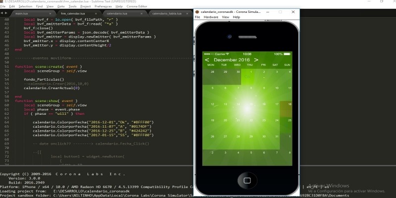 Calendar - Corona SDK App Template. Corona SDK, Sublime Text, Source code for sale !!! Ready for customize and include in your apps.