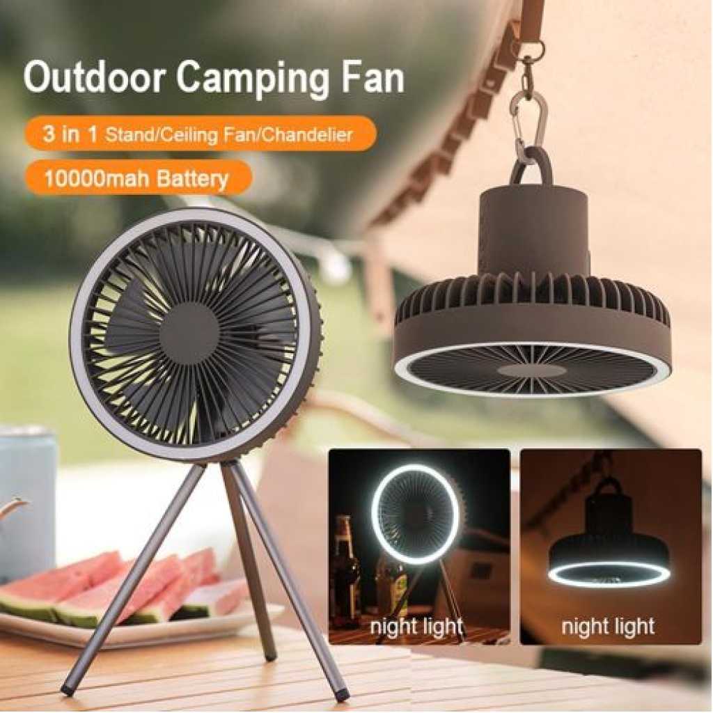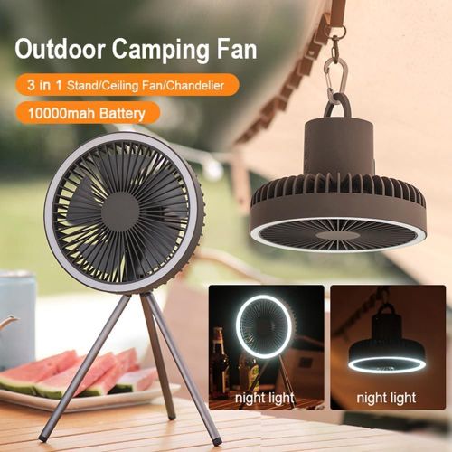 Key Features: 1,Aluminium alloy tripod detachable design, highlighting the high-end quality . 2,One machine is multi-purpose, can be used as desktop fan, ceiling fan, chandelier. 3,Timing function, 3 levels adjustable 1h, 3h, 5h. 4,2A input/output, can do the function of rechargeable battery. 5, 10000 mA polymer lithium battery, long battery life, safe and more secure.