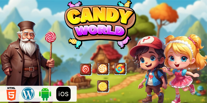 Candy World - HTML5 Construct Game. Explore the candy world with a candy matching challenge.