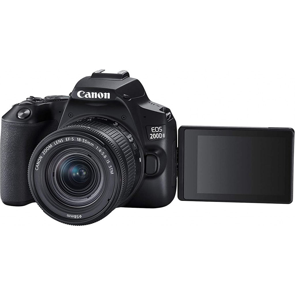 Canon EOS 200D II 24.1MP Digital SLR Camera + EF-S 18-55mm f4 is STM Lens (Black) Key Features: Canon EOS 200D II 24.1MP Digital SLR Camera + EF-S 18-55mm f4 is STM Lens (Black) Effective Pixels: 24.2 MP Sensor Type: CMOS WiFi Available 1080p at 60p + Time-Lapse