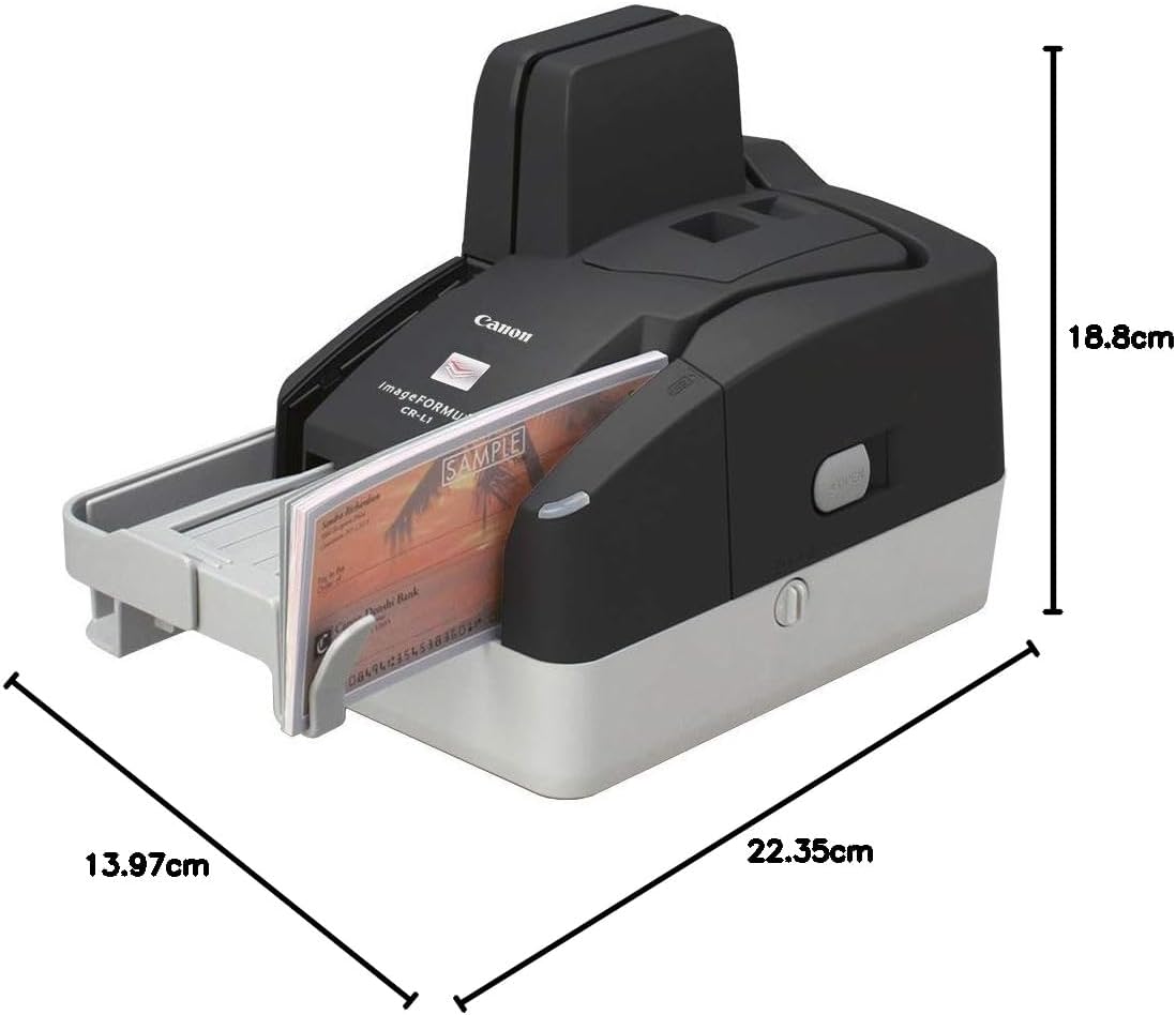 imageFORMULA CR L1 / CR-L1 UV Ultra-compact cheque scanner with high performance and reliability Ultra-compact cheque scanner with high performance and reliability Scan up to 45 cheques per minute in black and white/grayscale, or 20 in colour, for great productivity. UV model available and optional receipt printer. Increase productivity while saving on space with minimal, modern design. MICR reading A Canon patented magnetic head reads MICR data with high accuracy for reduced transaction errors Key Features: imageFORMULA CR L1 / CR-L1 UV Ultra-compact cheque scanner with high performance and reliability Ultra-compact cheque scanner with high performance and reliability Scan up to 45 cheques per minute in black and white/grayscale, or 20 in colour, for great productivity. UV model available and optional receipt printer. Increase productivity while saving on space with minimal, modern design. MICR reading A Canon patented magnetic head reads MICR data with high accuracy for reduced transaction errors