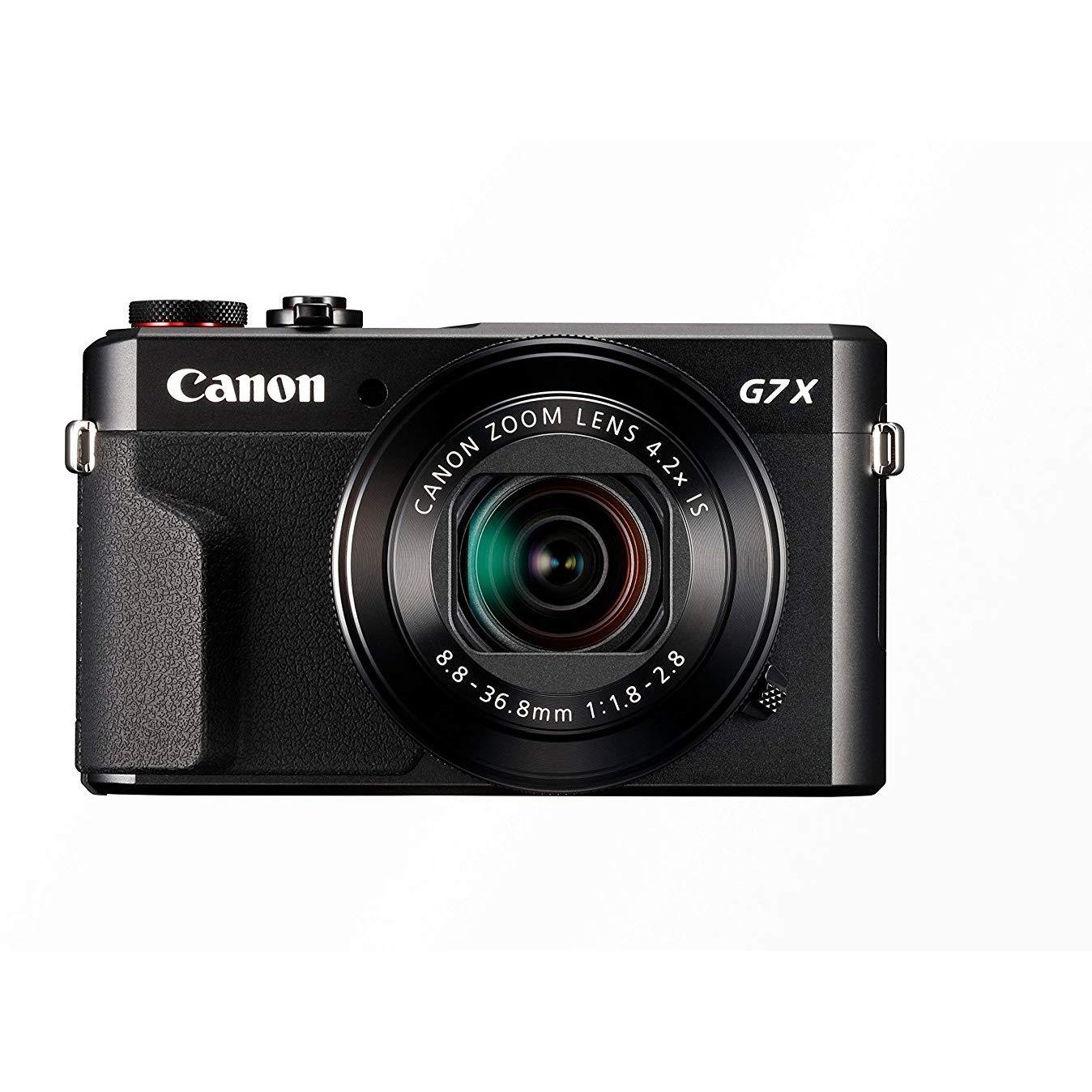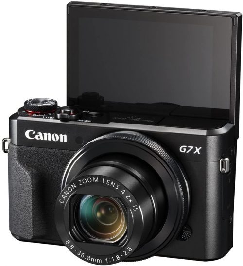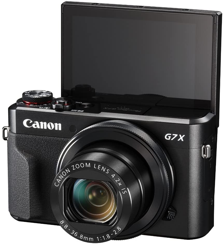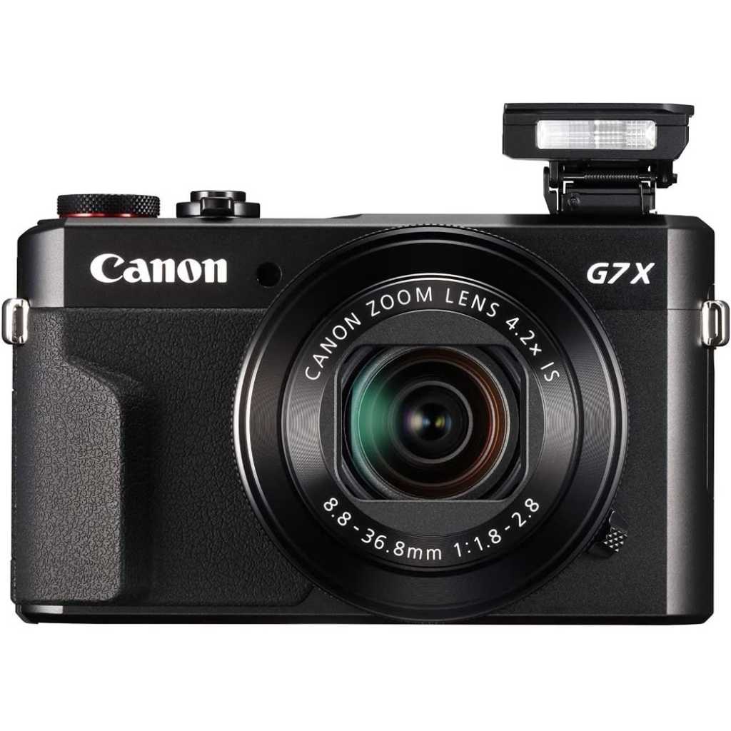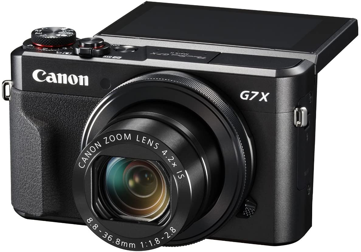 Stay inspired with the PowerShot G7 X Mark II camera, which combines exhilarating speed and performance with a smart, compact design. It can be ideal for travel, events and anywhere on the go, or as a secondary camera, and features a high-performance 1.0-inch 20.1 Megapixel CMOS sensor as well as a bright f/1.8–2.8 lens to help capture impressive images whenever your creativity sparks, even in low light conditions. The DIGIC 7 Image Processor immediately pays dividends with improved auto focus tracking, enhanced IS and superb image clarity even when shooting with a high ISO. For increased flexibility, the PowerShot G7 X Mark II offers high-speed continuous shooting up to 8 fps in RAW, JPEG and RAW+JPEG modes, and is equipped with Full HD capability, built-in Wi-Fi and NFC and in-camera RAW conversion, giving you everything you need to capture inspiring images and video and share them with ease. Key Features: The advanced video capabilities of the PowerShot G7 X Mark II camera can capture moments in the quality they deserve Features a large 1.0 inch, 20.1 Megapixel CMOS sensor that helps capture high quality images and videos with a wide dynamic range. Autofocus system features tile autofocus and manual focus. Operating temperature is 0 to 40 degrees Celsius. Note charging time varies considerably depending on the remaining battery power An aperture value of f/1.8 at the wide angle and f/2.8 when fully zoomed to a factor of 4.2x (24-100 millimeter), this lens equipped to capture a variety of situations with precision High resolution, 3.0 inches LCD monitor that tilts up 180 degrees and down 45 degrees is ideal for self portraits and capturing pictures at high and low angles with ease Built in WiFi for on the go convenience and the ability to easily post your images to select social networking and media sites With the ability to shoot continuously at up to 8 fps, it can help you capture incredible images with nearly no time wasted ADJUSTABLE, PACKABLE HOOD | Attached, adjustable hood can be rolled into collar when not in use