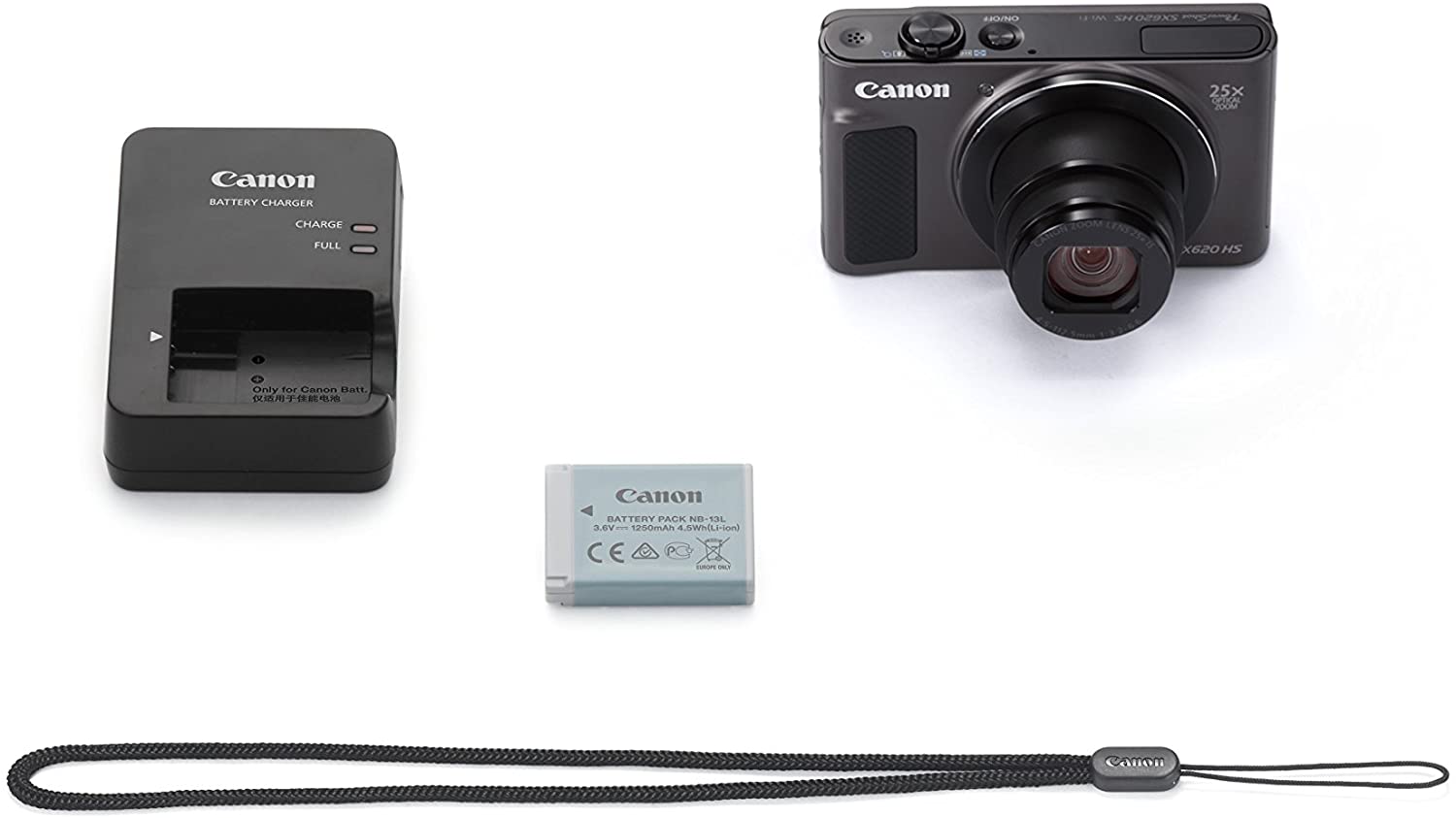 Whether you’re taking a vacation, celebrating a special family occasion or just having some everyday fun, the slim and sleek PowerShot SX620 HS camera is ready for your next shot. Enjoy the versatility of a powerful 25x (25-625mm) Optical Zoom for subjects both near and far. Equipped with Intelligent IS for optimized image stabilization, it helps capture everything from lovely close-ups to distant sights virtually shake-free, with confidence. You can then show off your photos with built-in Wi-Fi* and NFC**, which lets you transfer them to your compatible devices and upload to select social networking sites for your family, friends and the world to see. Stunning image quality comes via a 20.2 Megapixel*** CMOS sensor and the DIGIC 4+ Image Processor for beautiful shots whether you’re picnicking during the day or camping at night. If videos are more your thing, rest assured they’ll have gorgeous detail with 1080p Full HD video at your fingertips. With the PowerShot SX620 HS camera, you can relax knowing you can capture subjects far off in the distance. From the Manufacturer Moments in Reach Key Features: Powerful 25x Optical Zoom with Intelligent IS helps optimize image stabilization for virtually shake free images Built in Wi Fi and NFC allows for easy sharing and transferring of images and videos. Maximum f/number : f/3.2 f/6.6. Shutter Speed 1 1/2000 second 15 1/2000 second (in all shooting modes) 20.2 Megapixel CMOS sensor with DIGIC 4+ Image Processor helps deliver stunning image quality even in low light. Auto zoom dependent on number of subjects Capture spectacular 1080p Full HD video. Focusing Range : 1 centimeter (0.4 Inches) infinity (W), 1.0 meter (3.3feet) infinity (T) Large 3.0 inch (approximately 922,000 dots) LCD allows easy viewing even from a wide angle. Battery life: Approx. 295 shots, Eco Mode: Approx. 405 shots, Playback Mode: Approx. 360 minute Image Recording Format: Superfine / Fine Effective ISO 80 3200