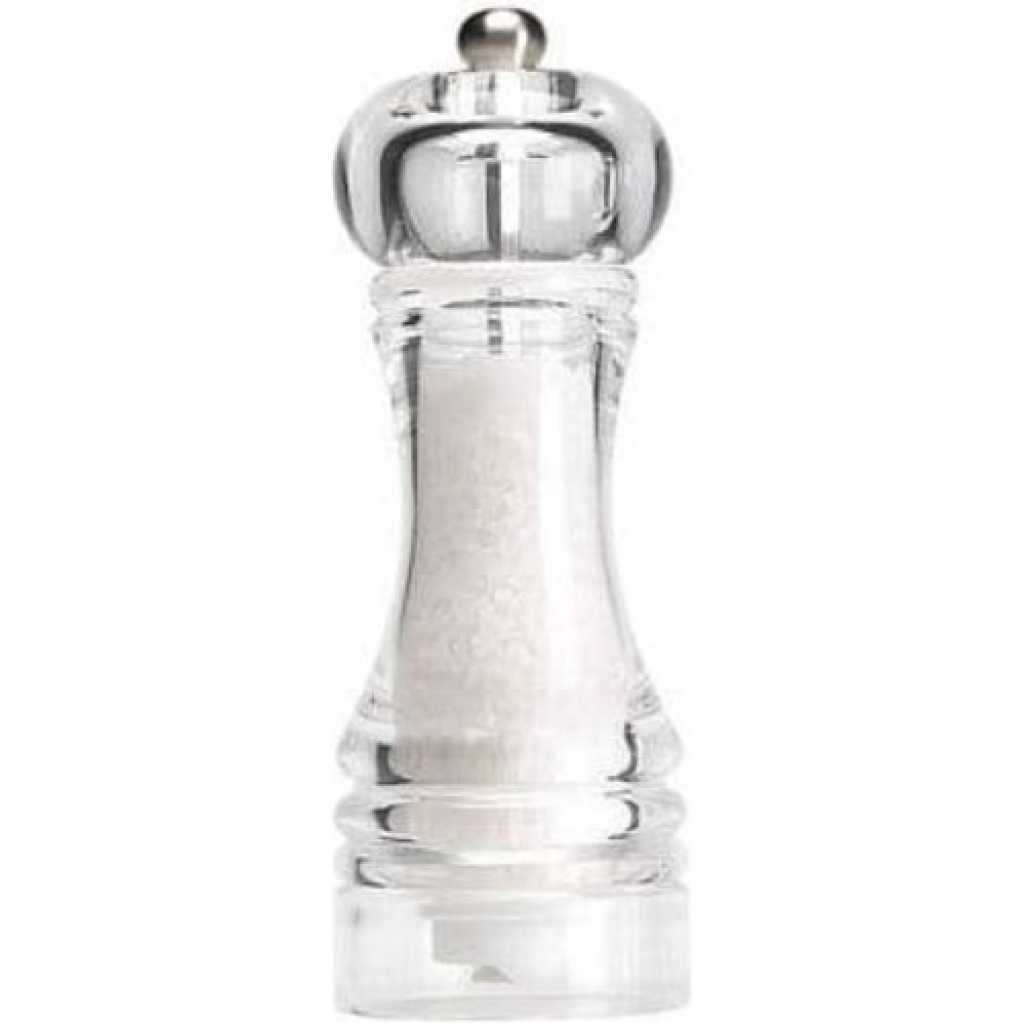 Capstan Clear Acrylic Pepper & Salt Mill Shaker. Crafted for the T&G Traditional Salt & Pepper Mills range, this Capstan Salt mill in clear acrylic. Measuring 7″ in height the Capstan Salt mill has a traditional design for using at home or on a picnic. The simple traditional mechanism allows you to grind salt whilst cooking or at the table. Matching Capstan Pepper mill in clear acrylic also available but sold separately. Dimensions = 180mm Key Features: 1 piece salt and papper shaker used for shaking salt, papper and other spices High quality material Affordable Easy to use This T&G Classic mill has a fully adjustable ceramic mechanism with a lifetime mechanism guarantee. There’s no metal grinder to corrode, and no plastic grinder to wear out.