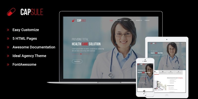 Capsule - One Page Medical HTML5 Template. Capsule is a One Page Responsive HTML5 Bootstrap Template. Any medical, hospital or doctor could use it properly.