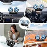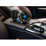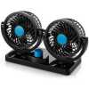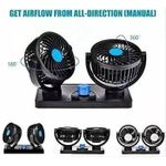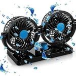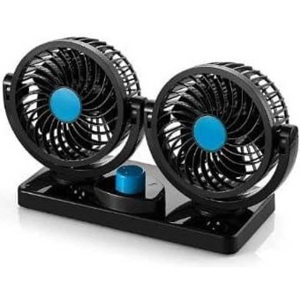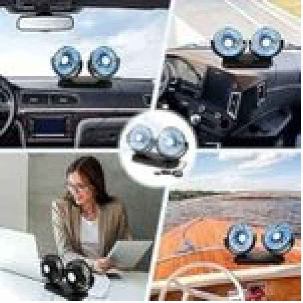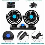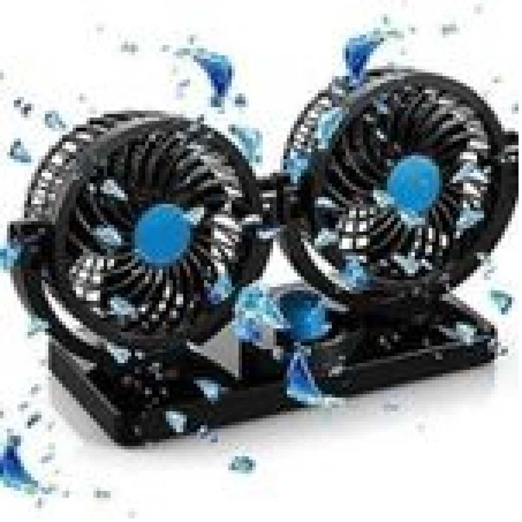 HIGH QUALITY & COOLING: 12V DC fan with dual 4 inch head fan,blow hot air out of your car, blows a cooling breeze to the driver and passenger,also remove any smells and defrosts your windshield effectively and remove moisture off of interior windshield on cold rainy days 2 SPEED CONTROL & 360 DEGREE ROTATION: Dual heads auto fans with 2 speeds,360 degree rotation for the 2 swivel fan heads to cool your the entire vehicle;it can also help the car A/C cool down quicker and more efficient, and spread a cooling air 2 ADHESIVE STICKERS:Strong wind with adhesive base to secure the fan to dashboard or arm rest area;Fans in small size will not cause visual blind spot when attached to your dashboard LOW ENERGY CONSUMPTION & LOW NOISE: With small power,8-15W low energy consumption ,the car can save more electricity and petrol; Motor Come with High Quality Cooper ,providing low noise but strong wind APPLICATION: FITS All Vehicles with 12V Lighter Socket(4.5 Feet Cable is long enough to place the fans on back seat, or use outdoor); Kind Note: you can use our fan at home, very convenient and comfortable if you have an AC to DC adapter