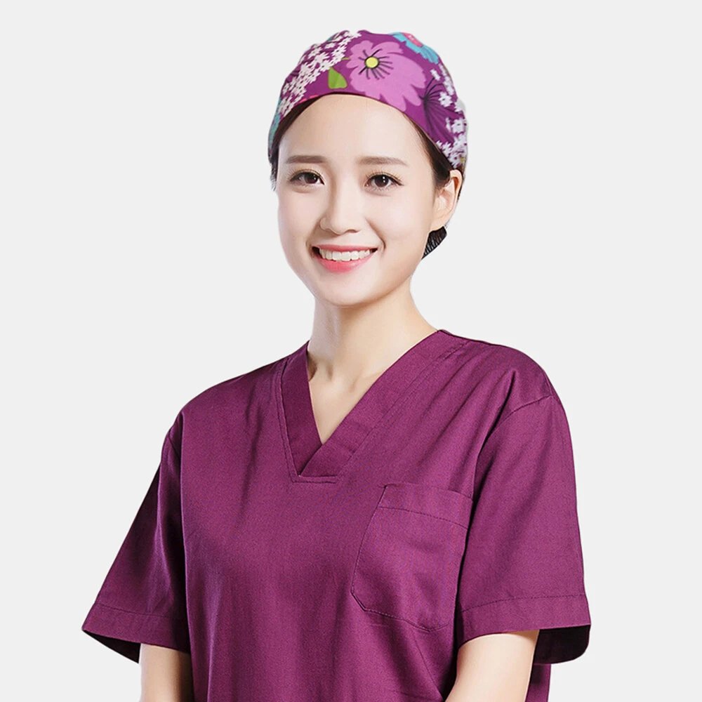 Cartoon Print Floral Elegance Tie-back Surgery Caps Scrub Hat