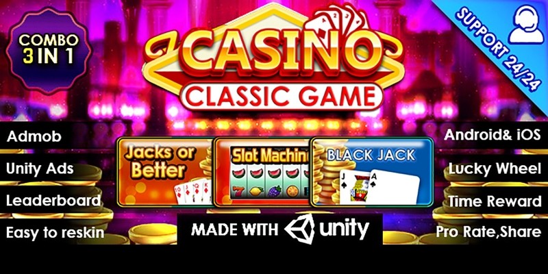 Casino Classic Game - Complete Unity Project. Casino Classic Games- Combo 3 in 1: Jacks Or Better, BlackJack and Slot Machine Unity (Don’t need the programming skills! )