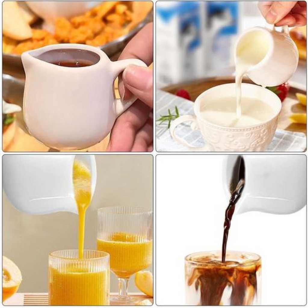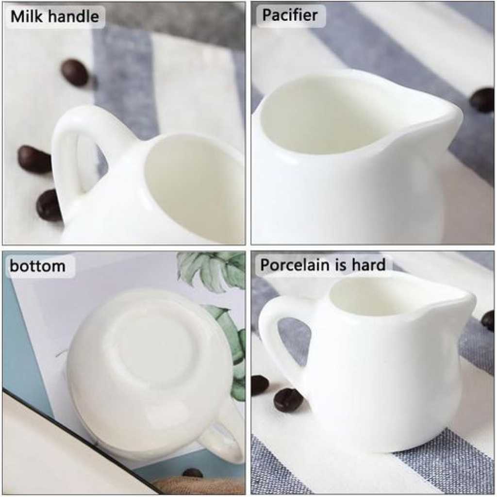 Key Features: ????【Set Contents】 You will receive 6pcs white ceramic milk jug small, the size of each one is 5.2*5.8cm/2.04*2.28 inches, the capacity is 110 ml/3.7 oz, the sufficient quantity and capacity is enough to meet your various needs. ????【High-Quality Ceramic】The white ceramic milk jug small is made of high quality ceramic, non-toxic and odourless, high quality and durable, the tooth surface is not easy to have scratches, has a comfortable touch and is durable. The bottom of the gravy jug is flat and can be placed smoothly on any flat surface. ????【Unique Design】 The white ceramic milk jug small has a practical design spout that conveniently can prevent dripping when pouring out the creamer and keep the table tidy. The white ceramic milk jug small also comes with handles for easy pouring without burning your hands and can be poured with hot or cold liquids.
