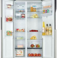 Changhong CSBS730 730L Side By Side 2 Door Fridge You’re not ready to give up all the comforts of a full size fridge but you just don’t have the space for one. That’s where this Cool refrigerator/freezer is the perfect compromise. You still get many of the features of a traditional full size fridge, including a separate, dedicated freezer compartment but the Cooler footprint makes it ideal to fit in a limited space like a studio apartment of home office. You’ll be amazed how much, and how well, it can store your refrigerated and frozen goods. Separate Freezer CompartmentKeep your popsicles chilled all summer long and cool your drinks to the coldest touch with the included ice tray. Storage VersatilityCan dispenser stores many Large cans for convenient and easy retrieval. Adjustable interior shelf, full width glass covered crisper and 5-Liter bottle compartment provide a place for most anything. ControlEasy access controls to set your desired temperature. Freedom to reverse door hinge to meet your spacial needs. Key Features: Brand: Changhong Gross Capacity: 730 Liters Net Capacity: 562 Liters Side By Side 2 Door Full-width Crisper, Interior Light Separate Full-width True Freezer Compartment with Ice Cube Tray Adjustable Leveling Legs, Manual Defrost Color: Silver