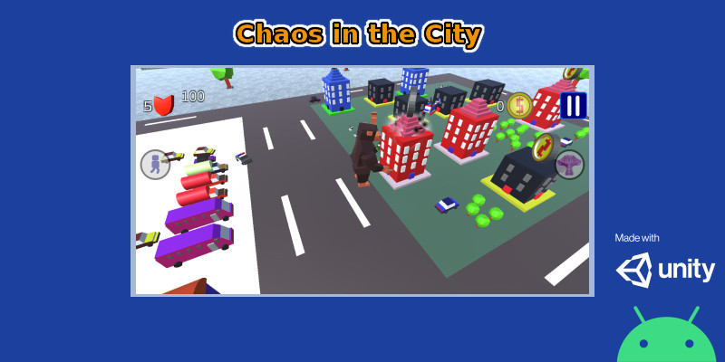 Chaos In The City - Unity Game Source Code. Control different monsters and destroy the small town, earn points and coins for the unlock monsters.
