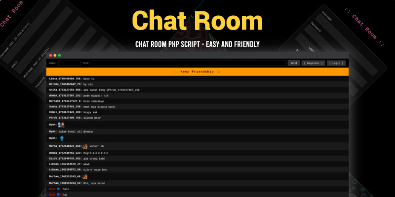 Chat Room PHP Script - Easy and Friendly. Modern Real-Time Chat With Moderation & Bot Management.