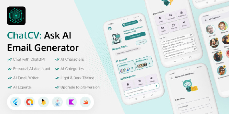ChatGPT App - AI Chatbot - Flutter App. ChatGPT App: AI Chatbot built in Flutter for Android & iOS. Powerful GPT-4 API, speech recognition, pro email assistant, and m