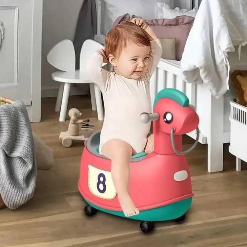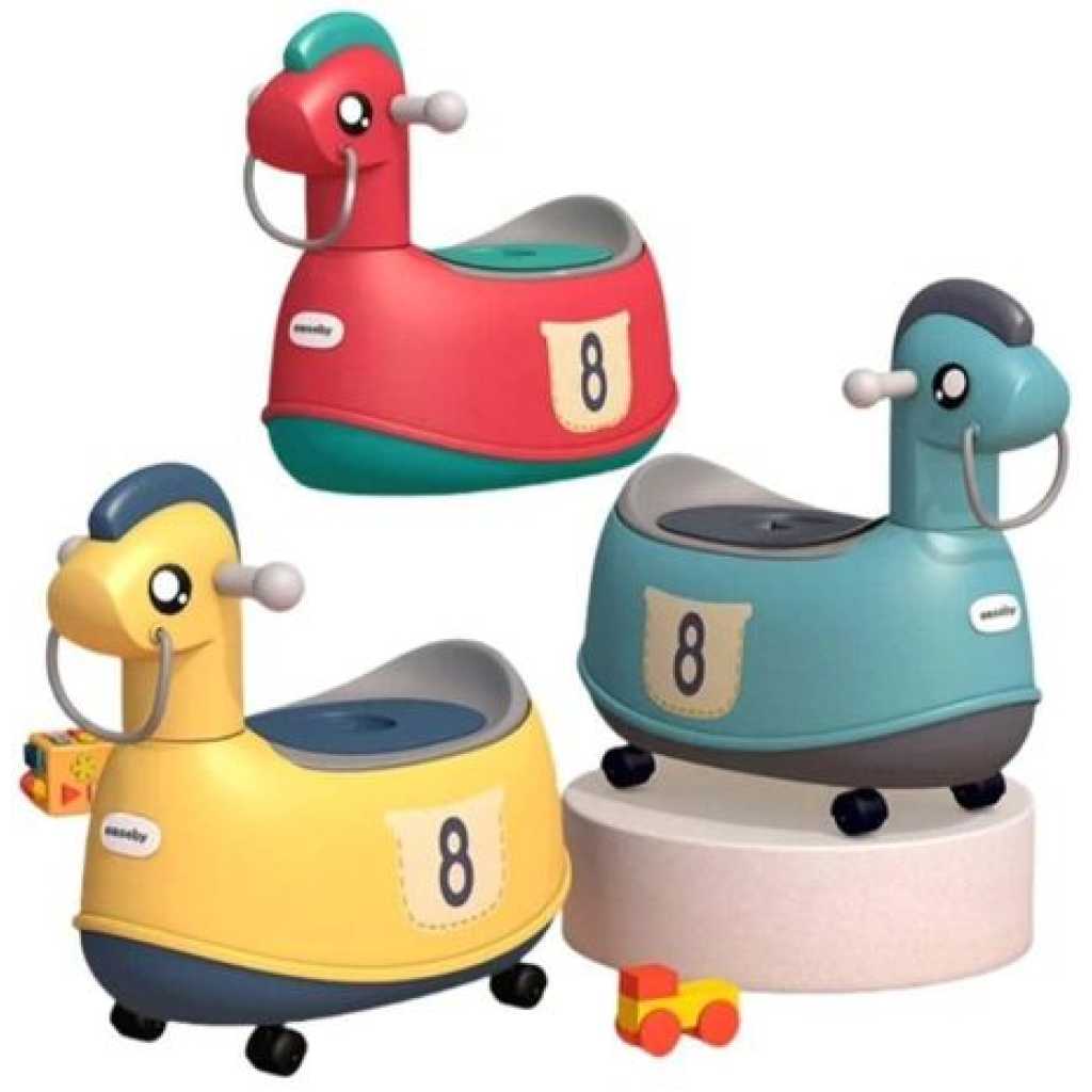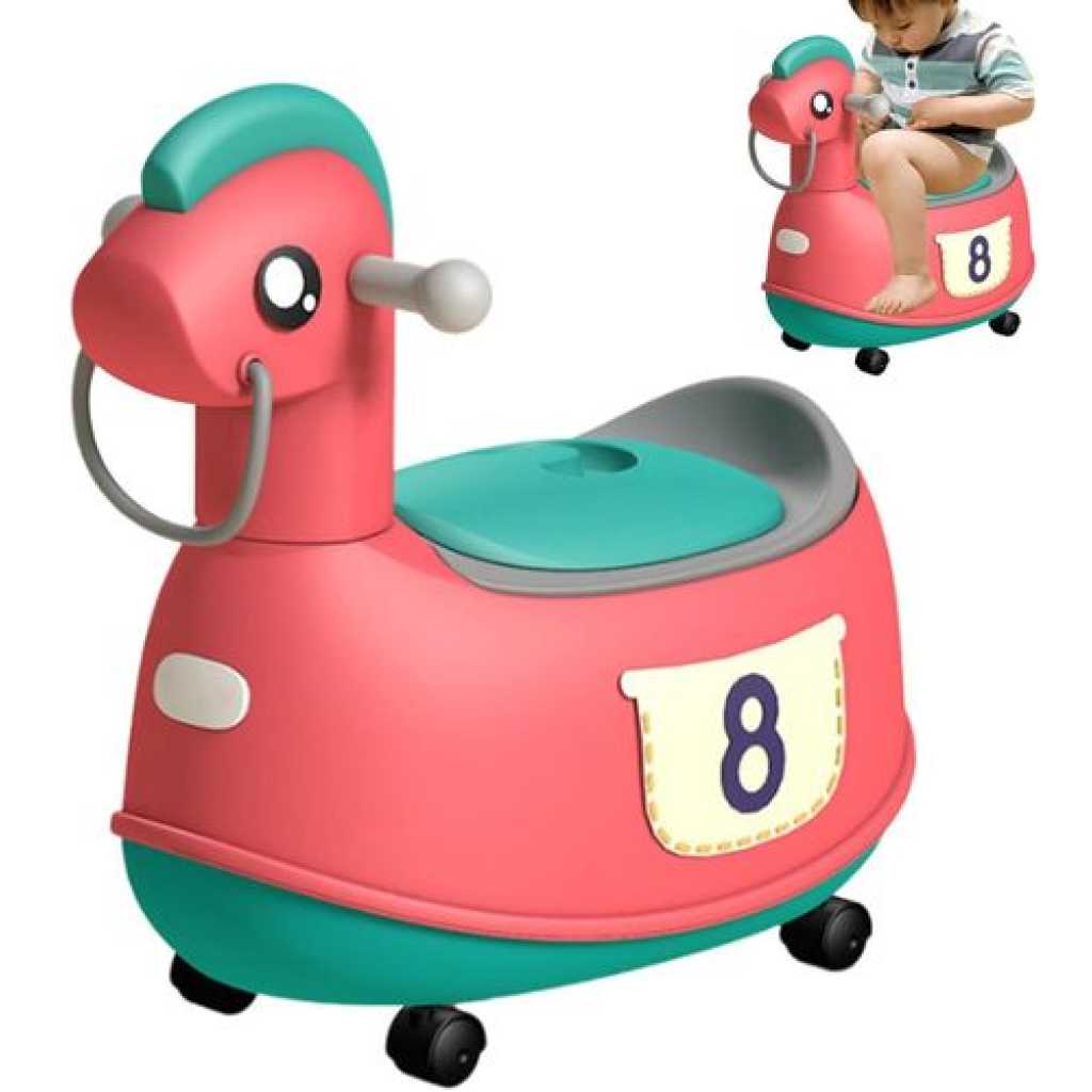 Children Horse Non-Slip Professional Splashing Gaurd Toddler Potty Guide Training Toilet Children Potty Seat Urine Bucket Portable Movable With 4 Wheels Chair For Camping Outdoor Indoor Travel Home Ca