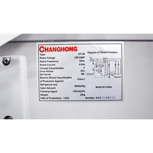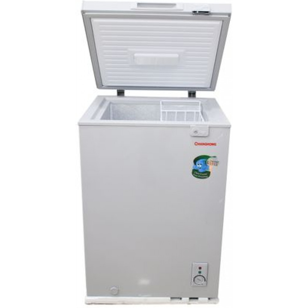 CHIQg CF130 127 Liters – Deep Freezer- Silver Sleek and Beautiful: CHIQ FREEZER is amazing!. The compressor cooling fridge will keep your drinks and food at a perfect temperature. With the built in freezer you can store your dinner, ice cream or other snacks! Fast food and beverage Cooling: Unprepared events is made easily possible with the Changhong’s bottom cooling system. Optimal humidity for longer-lasting Freshness: Fresh vegetables and fruits are good for you, but what’s good for vegetables and fruit? The smartly designed drawer provides an ideal environment for various fruits and vegetables so they stay fresher longer. Help keep your family healthy by providing a clean environment for your fruits, vegetables, and other perishables. SPECIFICATIONS Basic Features Gross Capacity: 127Litres Net Capacity : 98Litres Refrigerant: R134a/66g Insulation Blowing Gas: Cyclopentane Temperature Range: -10 – +10°C Uses German technology Climatic Class: ST Technical Specifications Voltage: AC 187-240V Frequency: 50/60Hz Input Current: 1.0A Power Input: 0.12kW