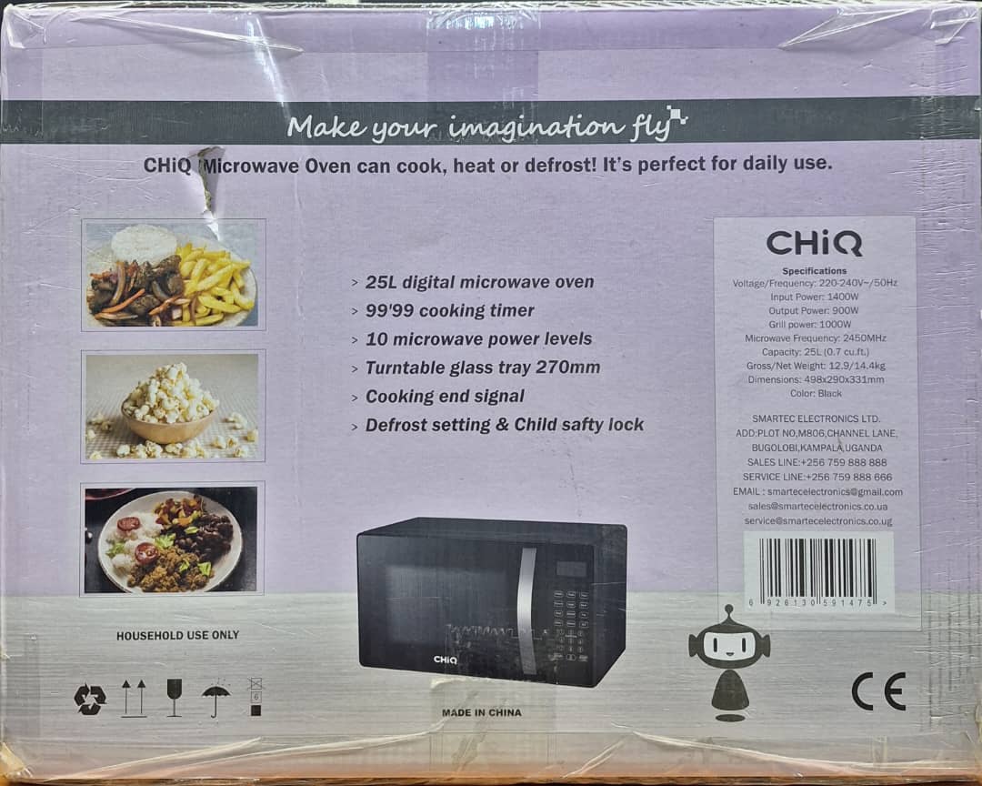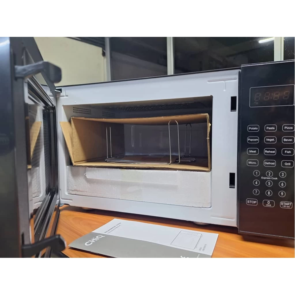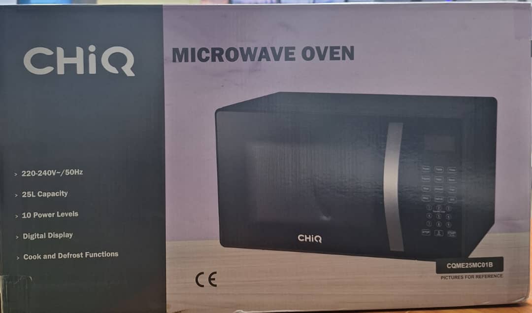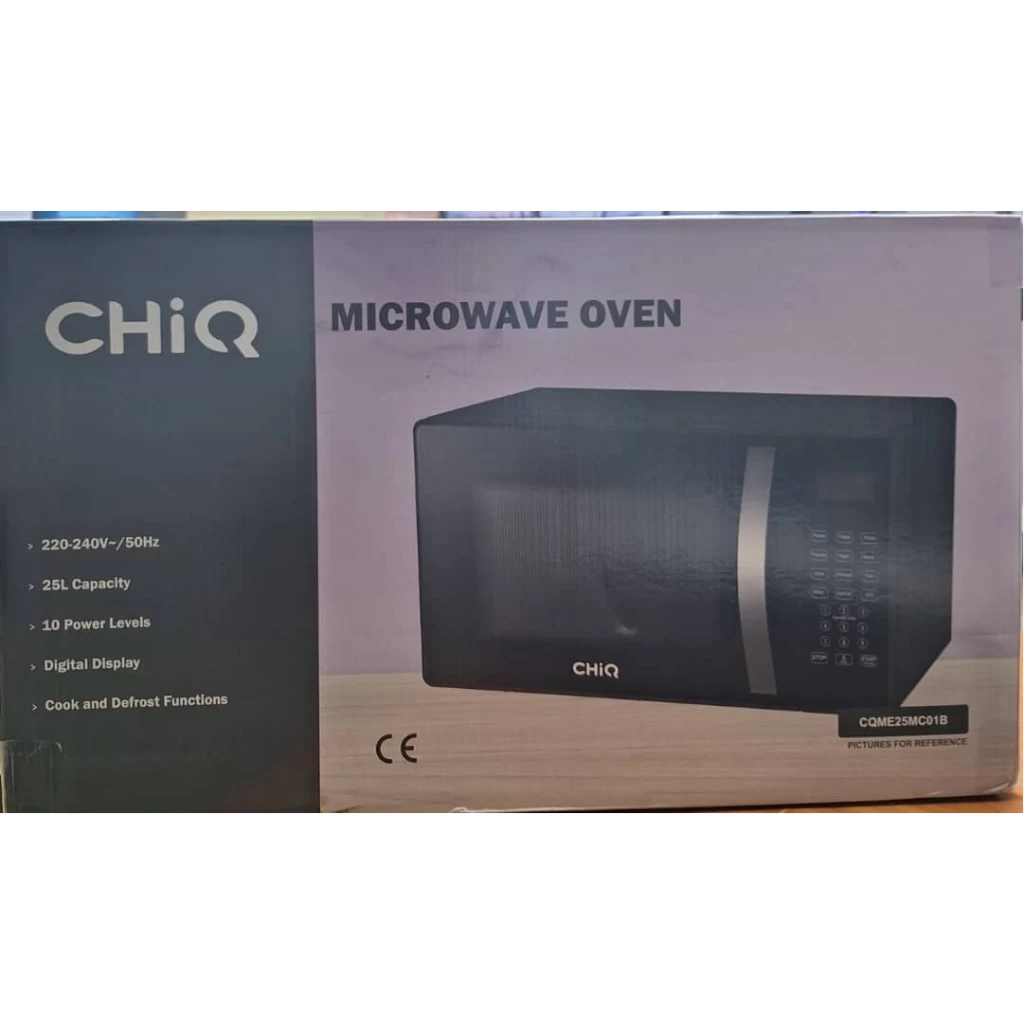 Key Features: CHiQ 25 – Litres Digital Microwave Oven With Grill. 25L capacity 10 Power Levels Digital Display Cook & Defrost Functions Cooking End Signal Child Safety Lock Turntable Glass tray 270mm 900W Power Output