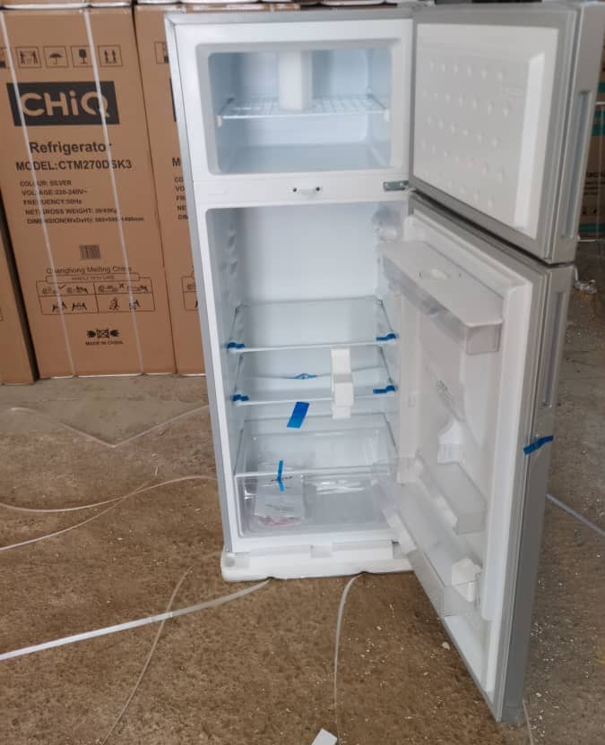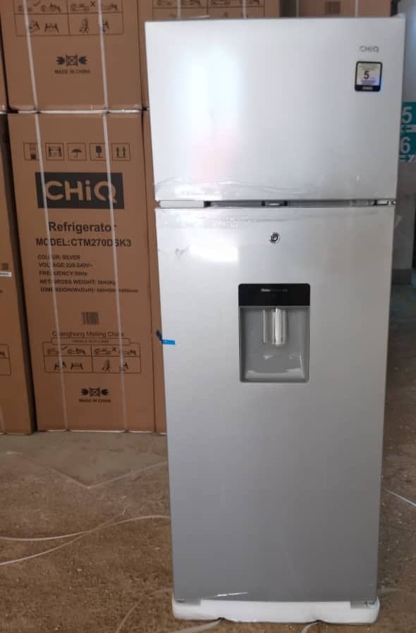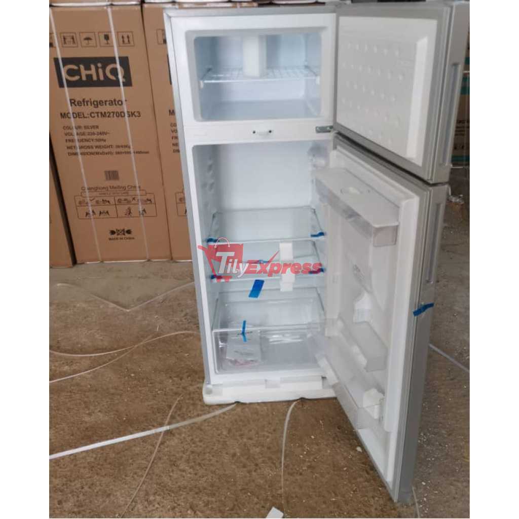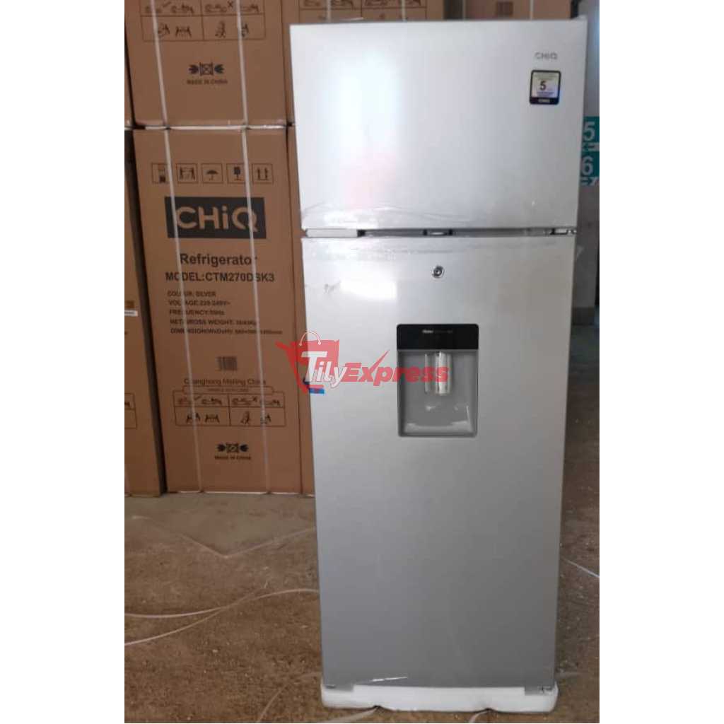 CHiQ 330-Litre Fridge CTM330DBIK3; Water Dispenser Top Mounted Double Door Fridge Refrigerator – Silver. Water Dispenser This water dispenser is fully integrated into the door and provides chilled and refreshing water whenever you want it. Its non-plumbed design allows you to place this refrigerator anywhere in your kitchen. Freshness Keep all your food and drinks fresh with the CHIQ 330L Top Mount Freezer Double Door Refrigerator. This fridge has all the features necessary; bottom freezer, single Vegetable and fruit Drawer, door pockets, Chill Compartment, and many more modern features to give you the very best in refrigerators Stylish CHIQ refrigerators have stylish exteriors and spacious interiors with multiple compartments to store products. CHIQ refrigerators are equipped with more efficient cooling systems that keep your food fresh for a longer time. It keeps your items cool for 24 hours after picking them up without consuming energy. This is the best energy and eco-friendly refrigerator on the market Family Refrigerators are an integral part of your family’s day-to-day life. We rely on refrigerators as you move through the workweek or weekend; efficient or large-capacity refrigerators such as the double-door CHIQ 330L Double Door Refrigerator can work with low voltages and can survive constant voltage fluctuations. Its mechanical control feature means that you can manually adjust the temperature settings to whichever suits your needs. This Hisense refrigerator is also very easy to maintain. This is because the anti-rust outer body and the inner body are made with galvanized metal. The multi-air cooling function of the Hisense 330L Two Door Refrigerator ensures the freshness of consumables at all times. Upon purchase of the refrigerator unit, it comes packaged with a user manual As the saying goes, Health is wealth; keep food items, fruits, and vegetables fresh and crisp in this Refrigerator at all times. It has a cooling retention capacity of up to 48 hours. The bottom refrigerator door comes with bottle holder compartments and an egg tray. Its sleek silver design can blend in with any decor. SPECIFICATIONS 330 Liters Low Noise Dark Silver Color Environmental Friendly Technology Double door refrigerator LED Lamp Defrost Type: Defrost Fast freeze function Refrigerator Type: Double Door Refrigerator Multi-air flow system Precise temperature control Interior led light for fridge compartment Fast freeze function Big vegetable crisper with humidity control design Adjustable spill-proof shelf Key Features: CHiQ 330-Litre Fridge CTM330DBIK3; Water Dispenser Top Mounted Double Door Fridge Refrigerator – Silver. Brand: CHiQ Water Dispenser Gross Capacity : 330 Type : Double Door Refrigerator Color : Silver Model: CTM330 Low noise