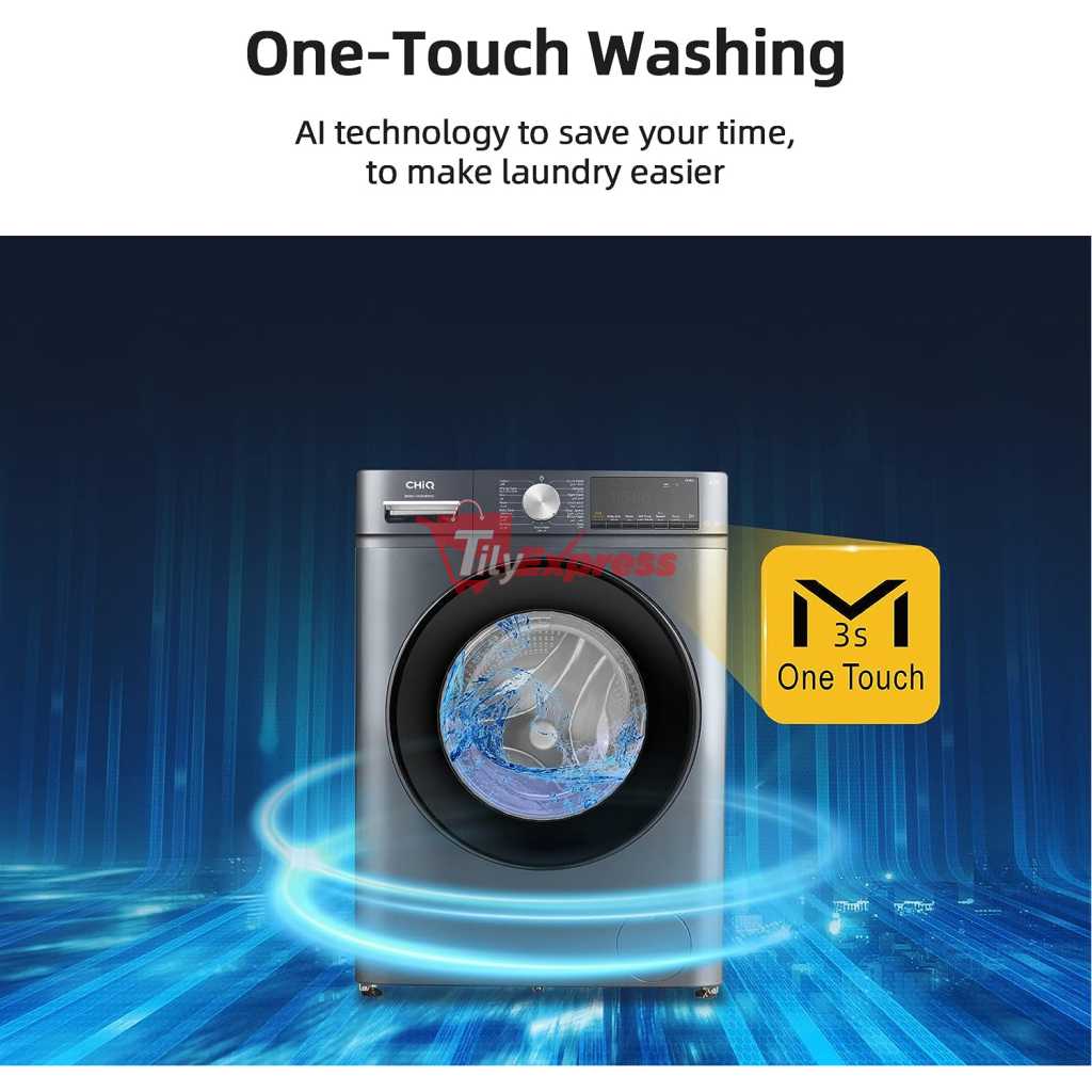 Key Features: CHiQ 7 kg Front Load Washing Machine – CG70-14586BSK3, AI One touch with Quick wash Function, High Speed 1400 rpm, Counter Depth and Child lock, Inverter Motor, Silver. Space Pro – ultra-thin with a larger drum for more laundry. The floor space of the CHiQ 10 kg washing machines is equal to that of traditional 7 kg washing machines, making them suitable for home washing. One-Touch Wash – Use one touch to start washing easily. 15 types of washing programs, including Unisex, Cotton, Baby, Quick Wash 15 Minute and Drum Cleaning, all types of regular fabrics and laundry. BLDC inverter motor – energy saving and quiet. High spin speed (up to 1,400 rpm) makes it easier to spin at high speeds so that you can drain water and dry clothes more efficiently. The end of the 24-hour time delay can avoid spikes in energy and water consumption, simultaneously saving water and energy. Human-centric designs, such as electromagnetic door locking, half-program clothing filling, child safety, diffluent detergent drawer, and antimicrobial door seal, can ensure a safe and smooth user experience. A 2 year warranty for the whole machine and 10 years for the motor ensures you smooth operation.