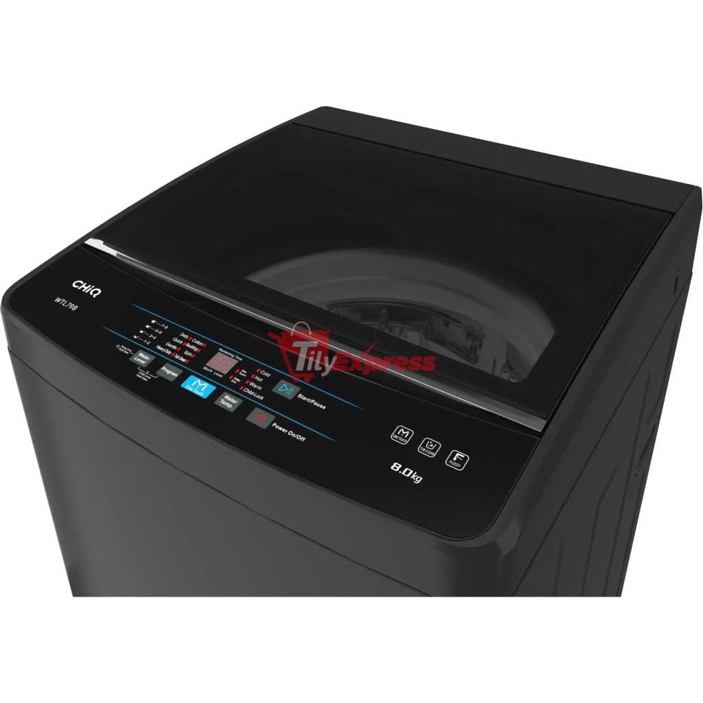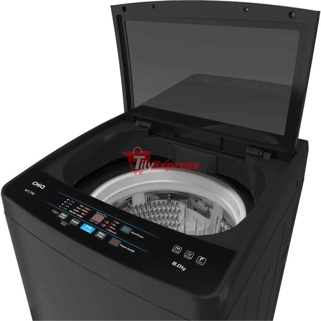 CHiQ 8kg Top Load Washing Machine Fully Automatic (Grey) Drum Clean You can clean the washing machine drum from time to time to keep the machine free from bacteria. One Touch With one touch of the “Smart clean” Button, the washing process will be completed automatically. Waterfall Flow 3D water flow, supports twist and tangle free! Perfect balance between Washing performance and care of clothes. Soft Close Lid Soft closing lid to prevent accidents and gives an unhindered view of what’s in your washing machine. Key Features Smart Wash Quick Wash 24 Hours Delay Start 3 Star Water Rating 2 Star Energy Rating Washing Machine TypeTop Load Key Features: CHiQ 8kg Top Load Washing Machine Fully Automatic (Grey). 8KG Capacity No Agitator Smart Washer Lint Filter Large Capacity Quick Washer