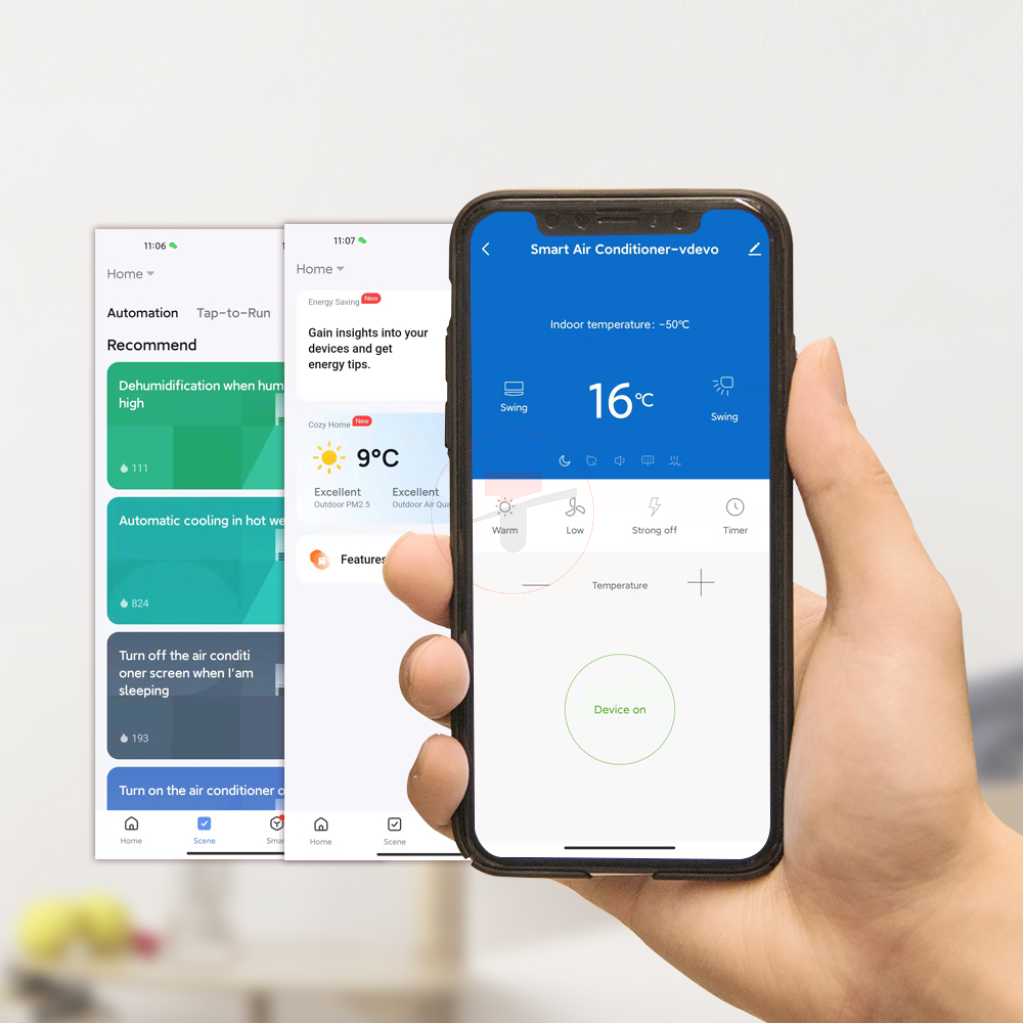 CHiQ 9000 BTU 2 Wall Split Air Conditioner A/C, CSC-09BC – White. Key Features: CHiQ 9000 BTU 2 Wall Split Air Conditioner A/C, CSC-09BC – White. Fast Cooling Super Class Energy Efficiency Wi-Fi Smart control. T3 Tropical: Even if the outdoor temperature is as high as 58 ℃, you can still enjoy cooking at home. Fast cooling: High cooling capacity and a strong engine keeps the room atmosphere cool and moist at all times. 4-Way-Swing: Ensure uniform air distribution throughout the room, adds efficiency to compressor run time, and reduce the resulting power consumption. Auto-restart: The unit restarts automatically at the original settings after power failure. Sleep mode: The quiet mode feature allows you to reduce both air flow and noise, providing you with perfect sleeping conditions.