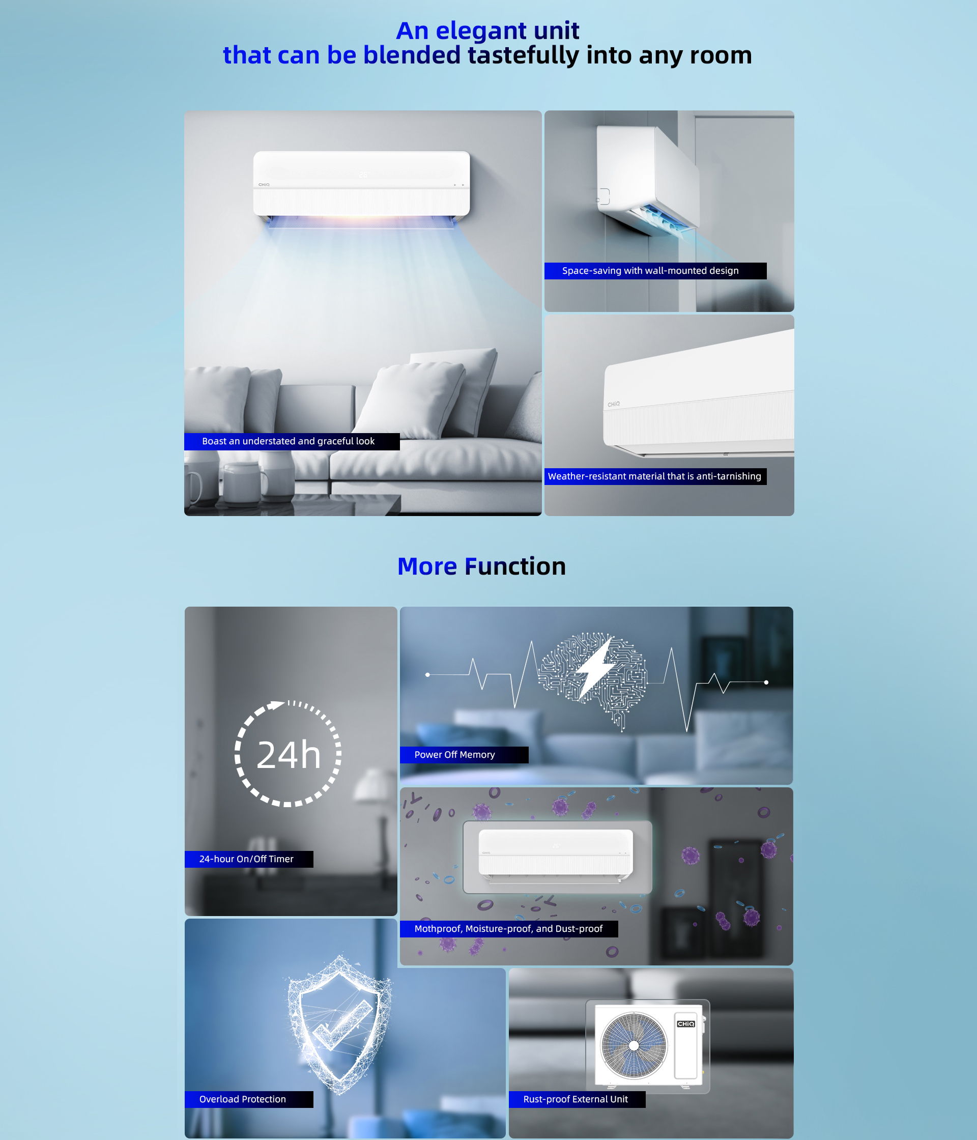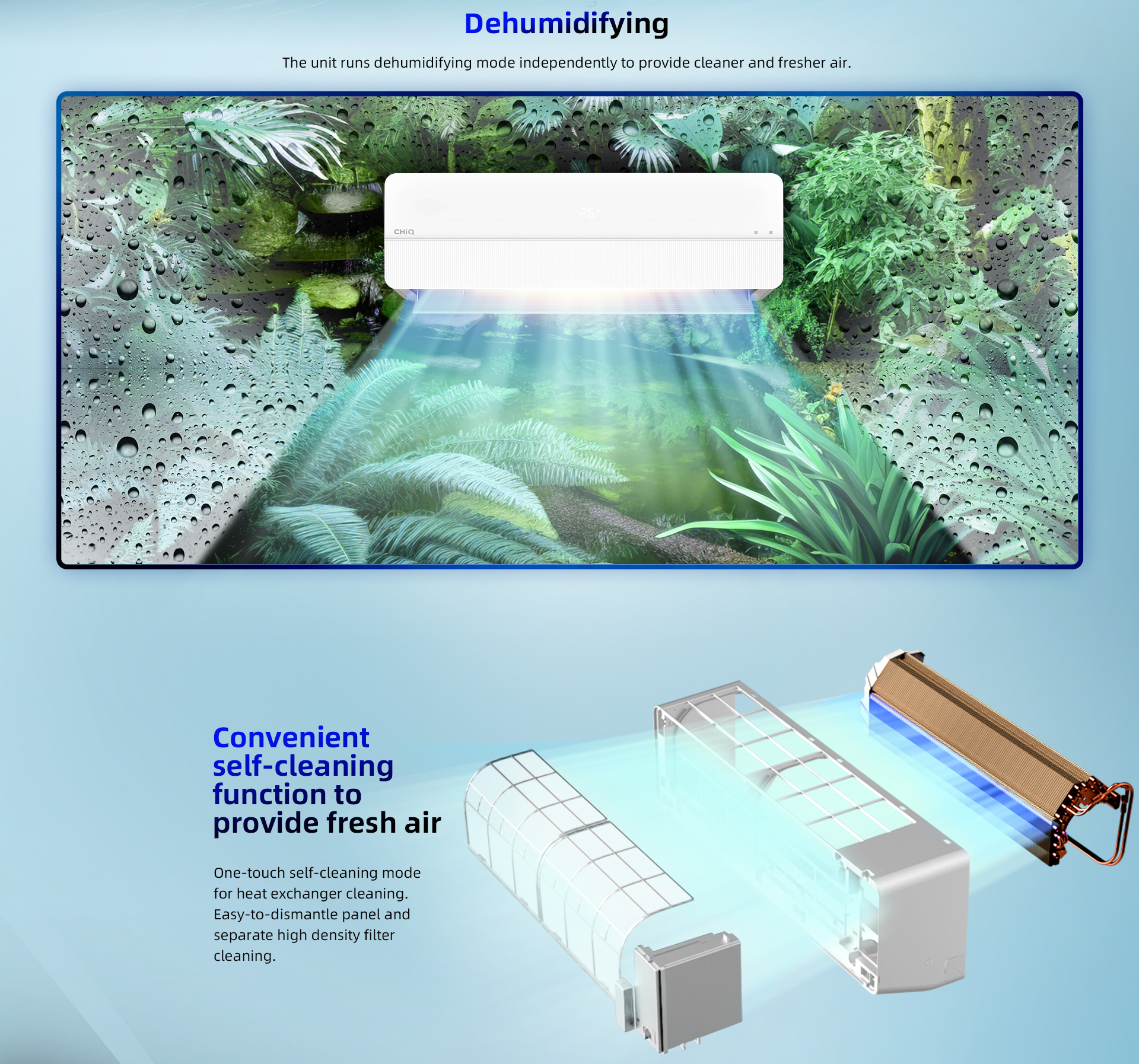 CHIQ 9000 BTU Inverter Air Conditioner, 4-Way, Swing, Auto Restart, Energy Saving & Efficient, Sleep Mode – White. 30s Fast Cooling Multiple Wind Speed Control Turbo Cooling Super Tropical INVERTER Compressor Independent Duhumidfying Mildew Proof High-Density Filter Rust-proof design of the outdoor unit Key Features: CHIQ 9000 BTU Inverter Air Conditioner, 4-Way, Swing, Auto Restart, Energy Saving & Efficient, Sleep Mode – White. 30s Fast Cooling Multiple Wind Speed Control Turbo Cooling Super Tropical INVERTER Compressor Independent Duhumidfying Mildew Proof High-Density Filter Rust-proof design of the outdoor unit