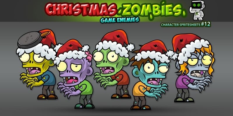 Christmas Zombies 2D Game Character Sprites 12. 2D Game Characters