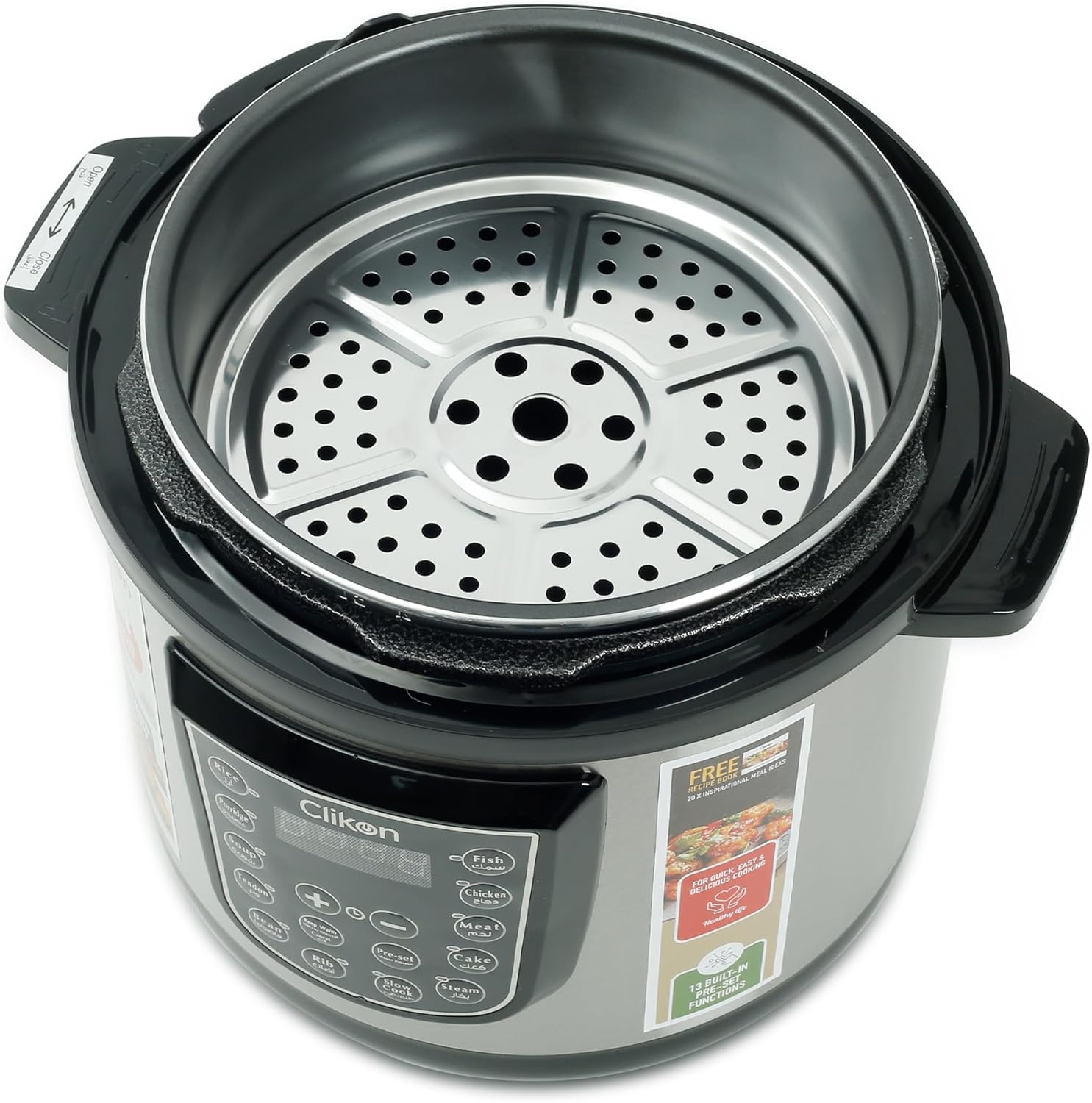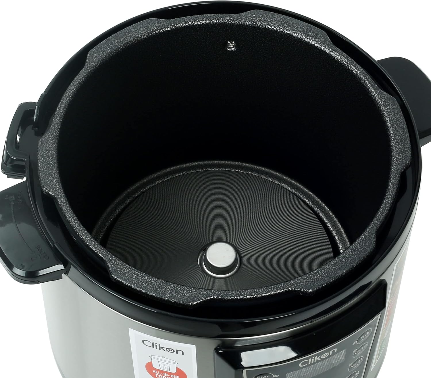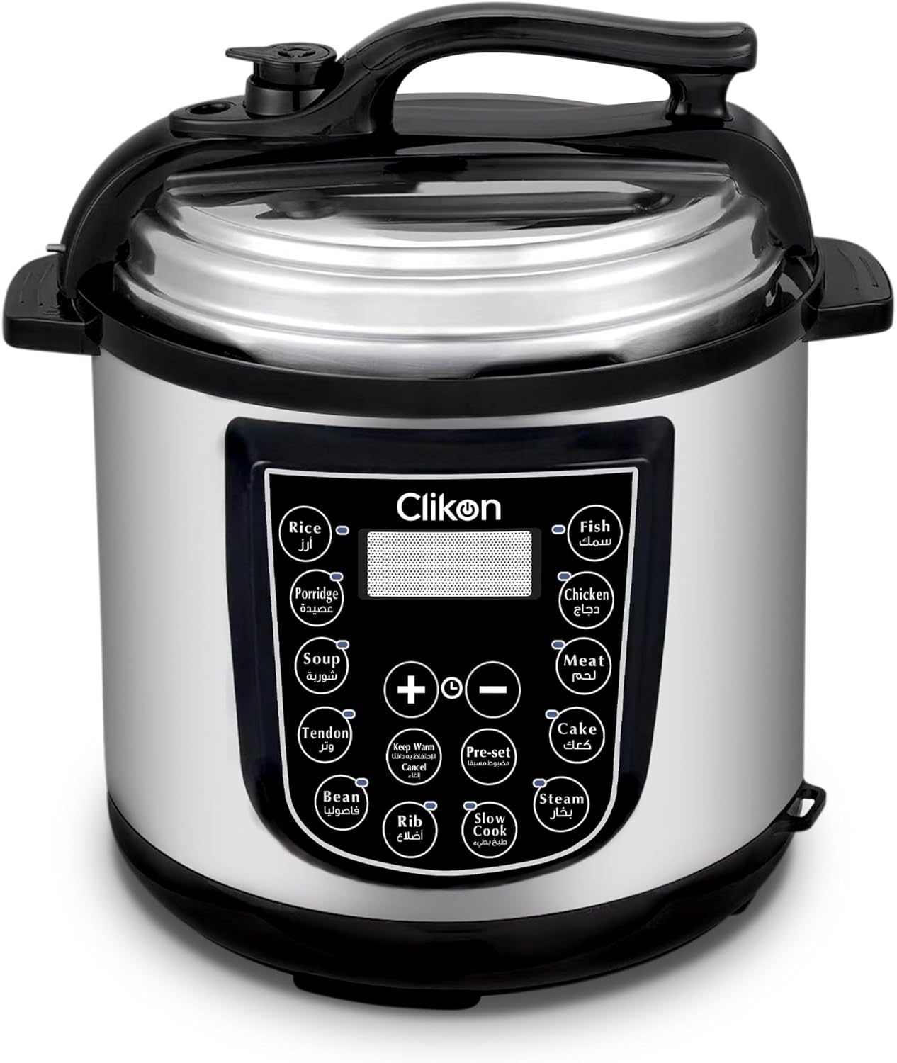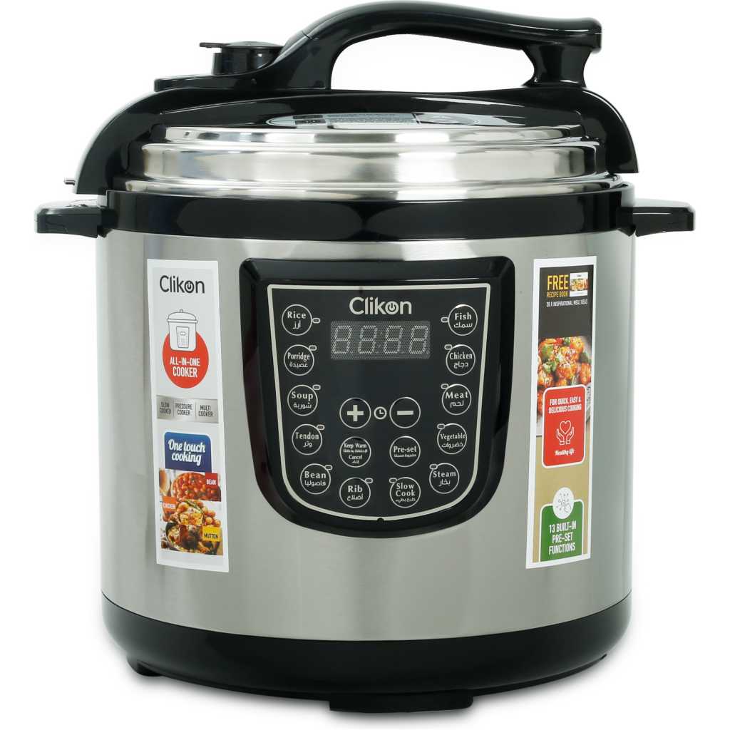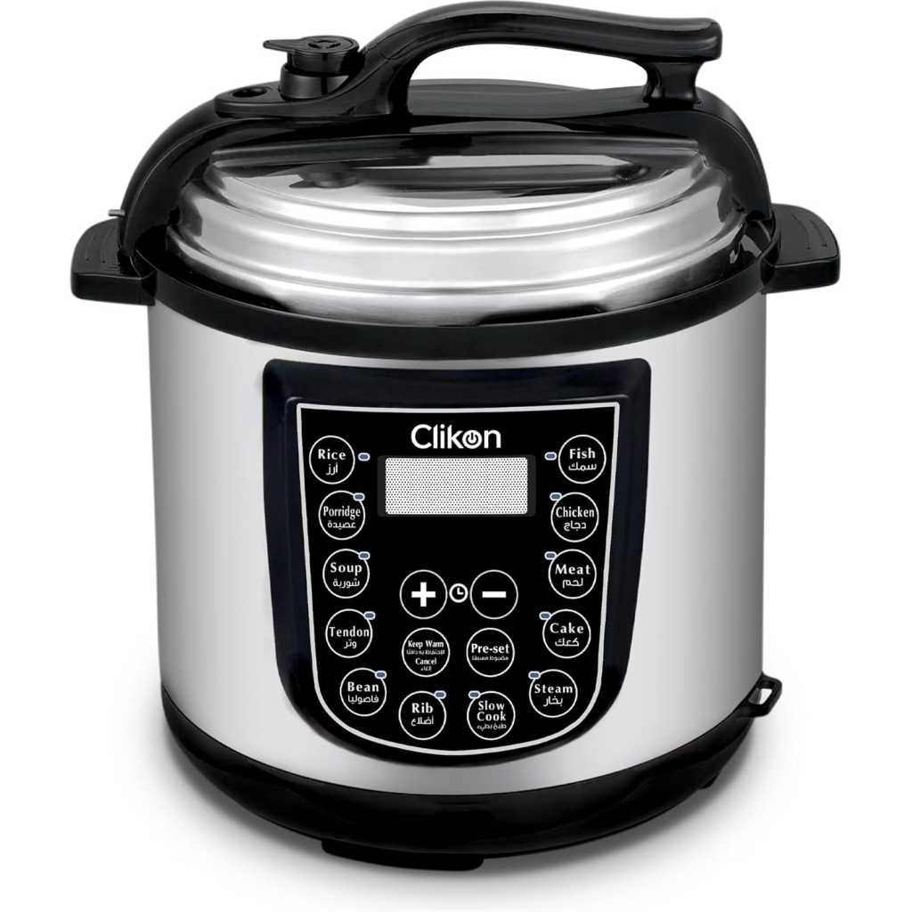 Clikon Electric Pressure Cooker 6L – 1000W – CK2720 Clikon Multifunctional Electric Pressure Cooker, with a generous 6L capacity and a user-friendly LED display. Seamlessly switch between cooking and warming modes for ultimate flexibility in meal timings. Specifically designed for baby foods, this cooker offers precise and gentle cooking to retain essential nutrients. With 13 built-in preset functions, from steaming to slow cooking, it caters to a variety of culinary needs. The package includes a cooking pot, rice spoon, and measuring cup, ensuring you have all you need to create delicious meals right out of the box. Key Features: Multifunctional Electric Pressure Cooker 6L Capacity with LED Display Cook and Warm Modes Ideal for Baby Foods 13 Built-in Pre-set Function Include: Cooking Pot, Rice Spoon, and Measuring Cup