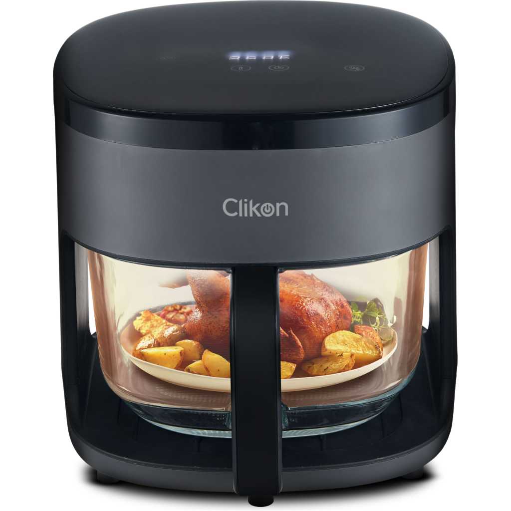 Clikon Air Fryer-4.2L 1300W – CK354 The Digital Air Fryer is a versatile and health-conscious kitchen appliance designed for 0% oil cooking, allowing you to prepare delicious and crispy dishes with minimal fat. It features a non-stick 4.2 L container basket, ensuring easy food release and hassle-free cleaning. The adjustable temperature controller and timer provide precise cooking control, enabling you to achieve the perfect results for a variety of recipes. This multifunctional air fryer is ideal for preparing an array of dishes, including cake (160° for 17 minutes), prawns (180° for 12 minutes), pizza (200° for 20 minutes), fish (180° for 18 minutes), steak (180° for 16 minutes), French fries (200° for 17 minutes), and chicken wings (180° for 25 minutes). The dishwasher-safe basket adds to its convenience, making cleanup a breeze. With its ability to handle a wide range of cooking tasks, the Digital Air Fryer is an essential tool for healthy, fast, and efficient meal preparation.
