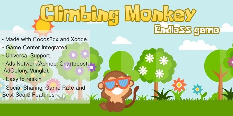Climbing Monkey Endless Game - iOS Source Code. Make the cute little Monkey Climb higher and higher on the tree branches before the water reaches you or the game is lost!!