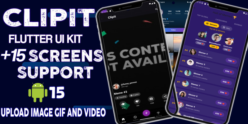 Clipit-Short video Flutter template UI KIT. comprehensive and modern Flutter template designed for building short video apps.