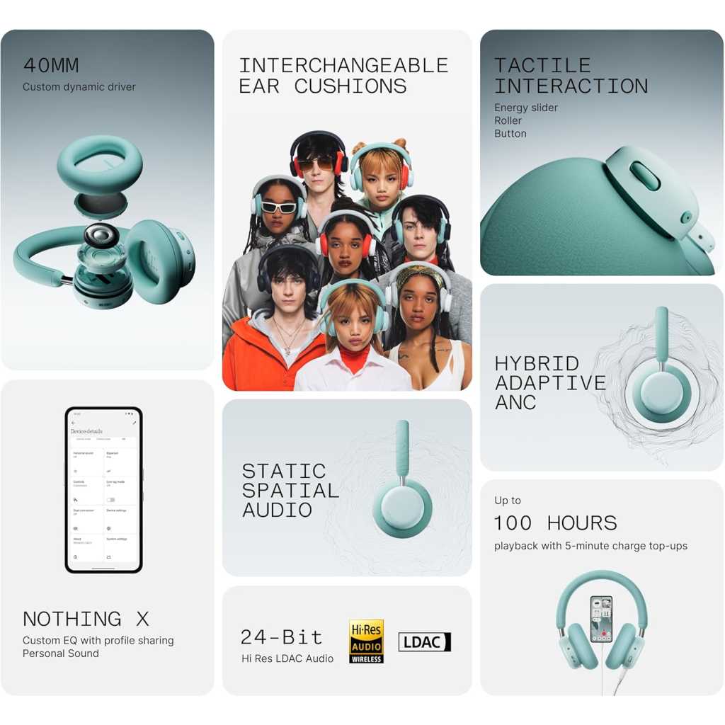 The Groundbreaking New Sound – Latest wireless over ear Bluetooth headphones from CMF by Nothing, Headphone Pro, Features LDAC and Dual Hi-Res Certification. with customized 40mm dynamic drivers to deliver a more remarkable listening experience than ever before. Broad Compatibility, Simple to Use – An ideal headphone choice for iOS and Android, it supports various streaming devices via Bluetooth pairing or AUX and is also compatible with macOS & Windows. With built-in Google Fast Pair & Microsoft Swift Pair, it is ready to use right out of the box for most. Less Noise, Purer Sound – Experience up to 40 dB of Adaptive Active Noise Cancellation that elevates your listening experience and immerses you more fully in the music. Need to hear ambient sound? Just press the ANC button to toggle Transparency Mode instantly. All-Day Endurance and Comfort – Enjoy up to 50 hours of non-stop ANC-on wireless playtime, Our over-ear headphones featuring memory foam earpads and a cap-friendly headband that offer all-day comfort and stylish portability, from a quick podcast to hours of deep focus… Built For Your Unique Style – Featuring Personal Sound Profile & CMF Spatial Audio. Why settle for standard sound? Explore your own concert/cinema-level experience for each listening session. Customizable via the Nothing X app. Stay Connected & Clear – 3HD ENC microphones keep your voice sharp in every meeting or call. It also supports dual-device connection at the same time; imagine you can seamlessly switch from a just-finished laptop meeting to a phone call without missing a beat. [Default off, on via the Nothing X app] Easy Control – We’ve added an Energy Slider (Bass/Treble control) that allows you to fine-tune your music further. Let it sound exactly how you want without compromising on bass and vocals. Besides this, the intuitive Roller & Buttons provide more effortless phone-free control while on the move.
