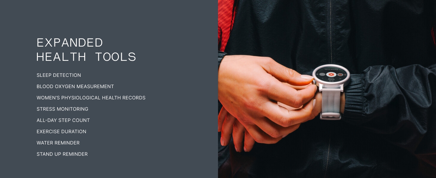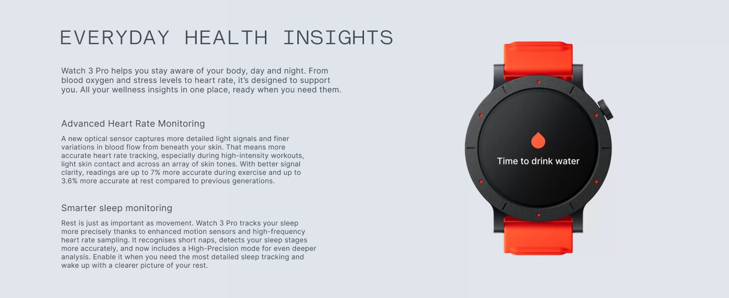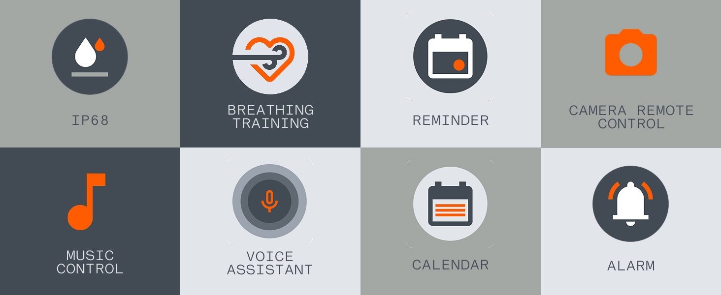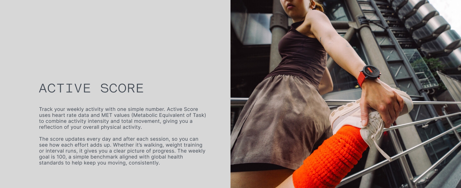 Product description Previous page Next page Previous page Next page Previous page Next page Previous page What’s in the box Charging Cable User Manual Watch Band Grade Fitness & Health System: Active Score (MET-Based Fitness Tracking) on this advanced fitness tracker helps users understand their daily health status and effectively monitor their well-being. It offers 24/7 medical-grade heart rate/SpO2/stress monitoring, women’s health features to track menstrual cycles and retrospective ovulation estimates, smart hydration & posture reminders, plus precision step counting with GOMORE technology—all with advanced wear detection! More Convenient & Durable: This smartwatch features a 3D warm-up guide and ‘My Heart Rate’ technology for personalized training zones. It’s advanced Smart Movement Algorithm tracks your workouts in detail – Ink. aerobic/anaerobic performance, training load, and recovery time. Seamlessly sync with Apple Health, Google Fit, and Strava to share data and challenge friends. The Watches feature IP68 waterproof against sweat and water splashes. 13 days long battery life, your ultimate Workout Partner.