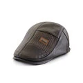 Collrown Beret Herre Justerbar PU Læder Flad Cap Stitch Newsboy Cap Kørsel Fiskeri Cabbie Hat Spids Cap til Efterår Vinter