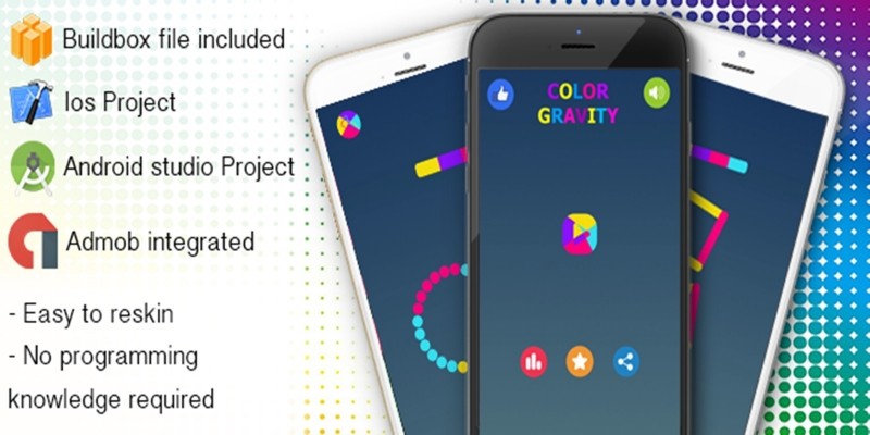 Color Gravity - Buildbox Game Template. Color Gravity is a fun game with clean and cool Ui and graphics build with buildbox