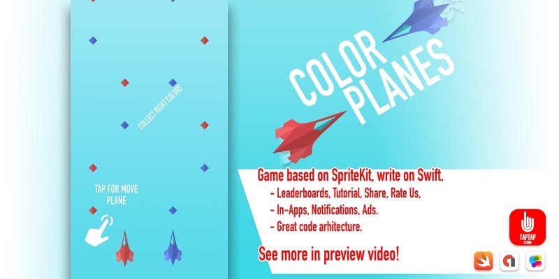 Color Planes - iOS Source Code. Tap for plane, collect sale colours. It’s endless type game!