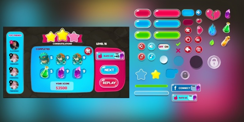 Colorful Bubble Game GUI. Colorful GUI for mobile or web games