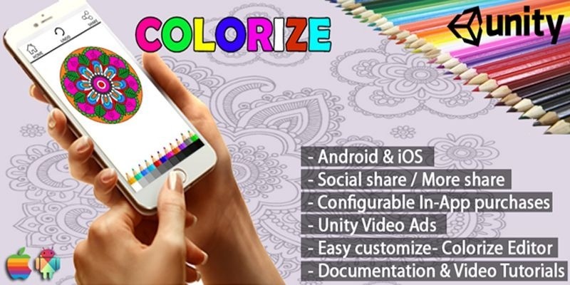 Colorize Coloring App – Unity Source Code. This template is a full suite of adult coloring application with different sets of categories and color palettes.