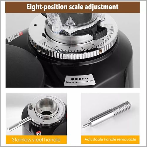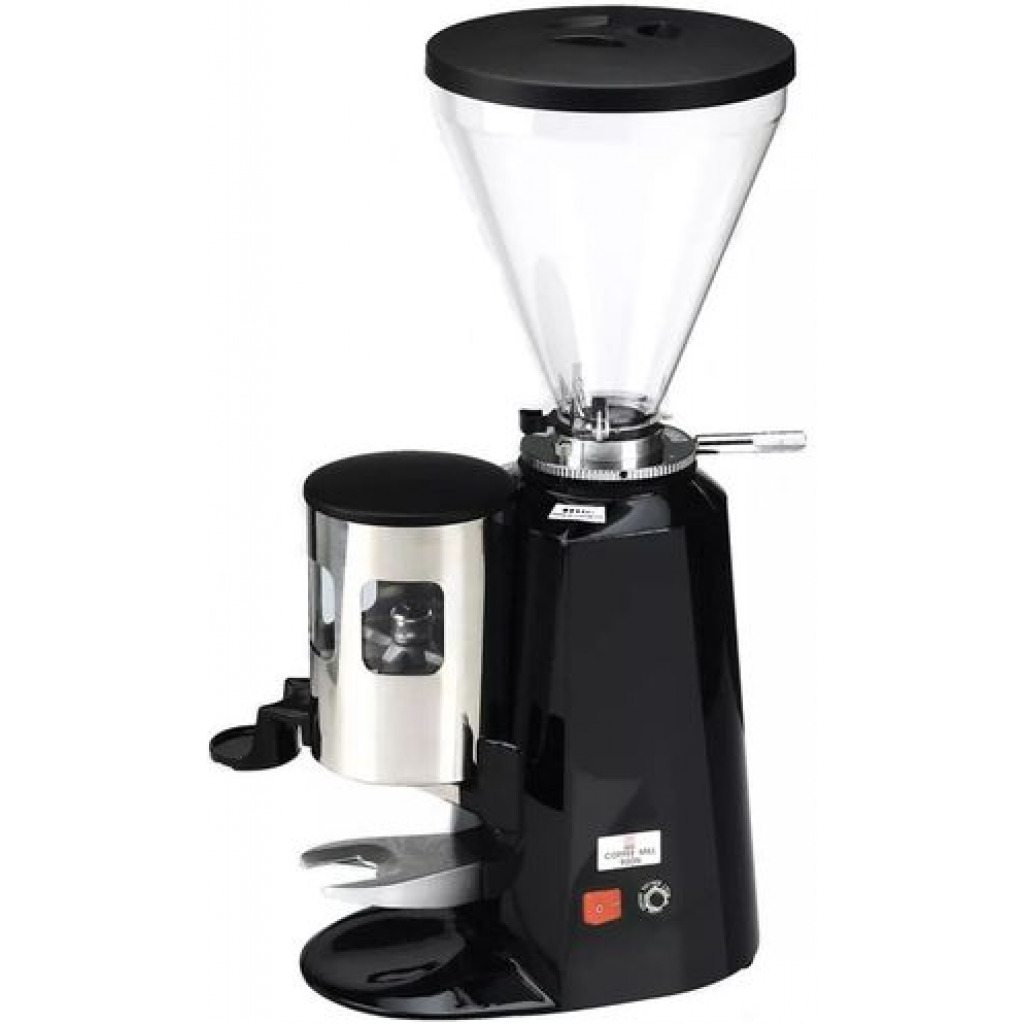 Commercial Espresso Coffee Machine Designed for quick, easy, one-touch operation, this model has an auto on/off feature and a lever-operated portafilter filling option. Simply place a portafilter underneath and pull the lever until you hear a click to grind the perfect amount of ground espresso directly into the portafilter head. The included, side-mounted tamper allows you to tamp the espresso into the portafilter. This grinder is very efficient and provides many levels of bean grinding. Whether your grinding for drip or espresso coffee this does a great job. Additionally, it doesn’t take up much counter space.” This model has 8 precision grind settings so you have complete control over the intensity of your espresso shots. Simply turn the adjustment handle and lock it into place with the set screw to designate your preferred coarseness The heavy-duty aluminum base is sturdy and strong, and has no problem keeping the unit stable during operation. Plus, it operates more quietly than competitors to reduce ambient noise in your coffee shop, restaurant, or cafe.